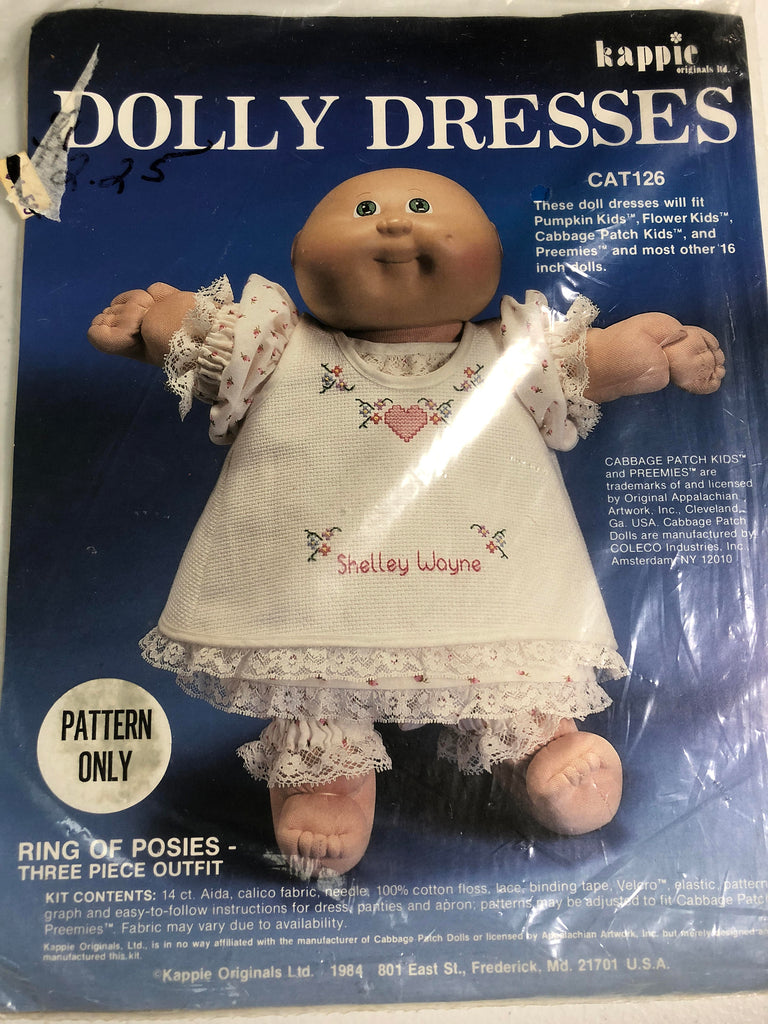 Kount on Kappie, Dolly Dresses, Ring of Posies, Three Piece Outfit for Cabbage Patch Kids and 16 inch CAT 26, Cross Stitch Pattern Only*