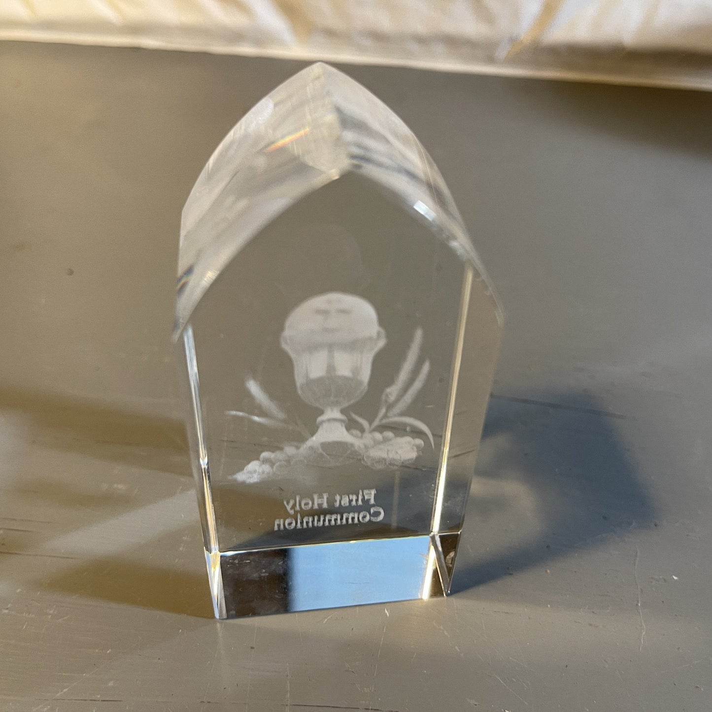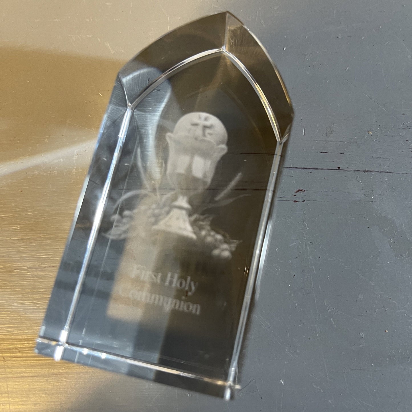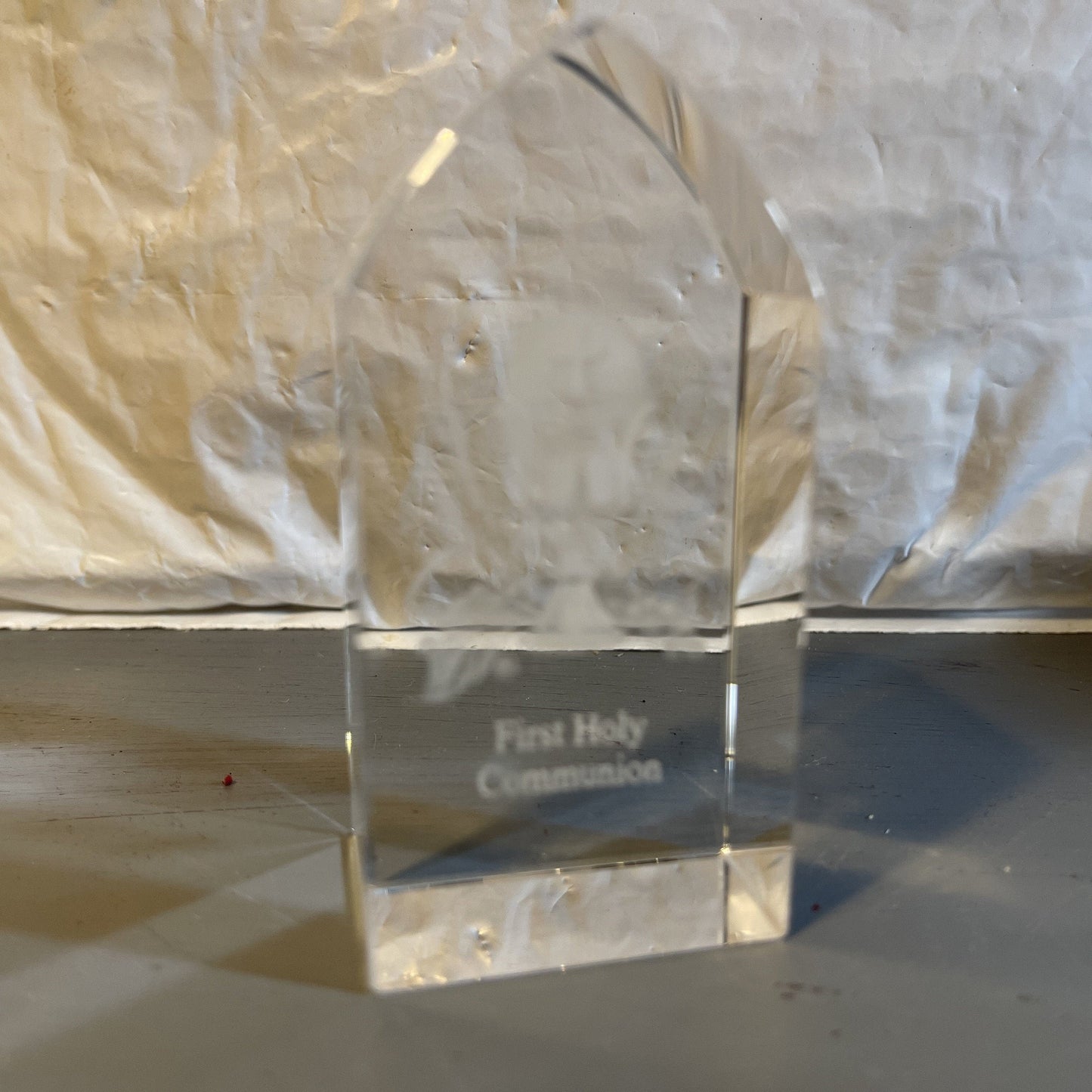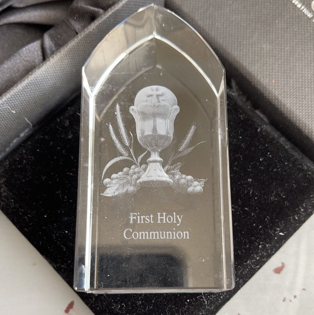 Laser Etched Glass First Holy Communion vintage commemorative By jeweled Cross