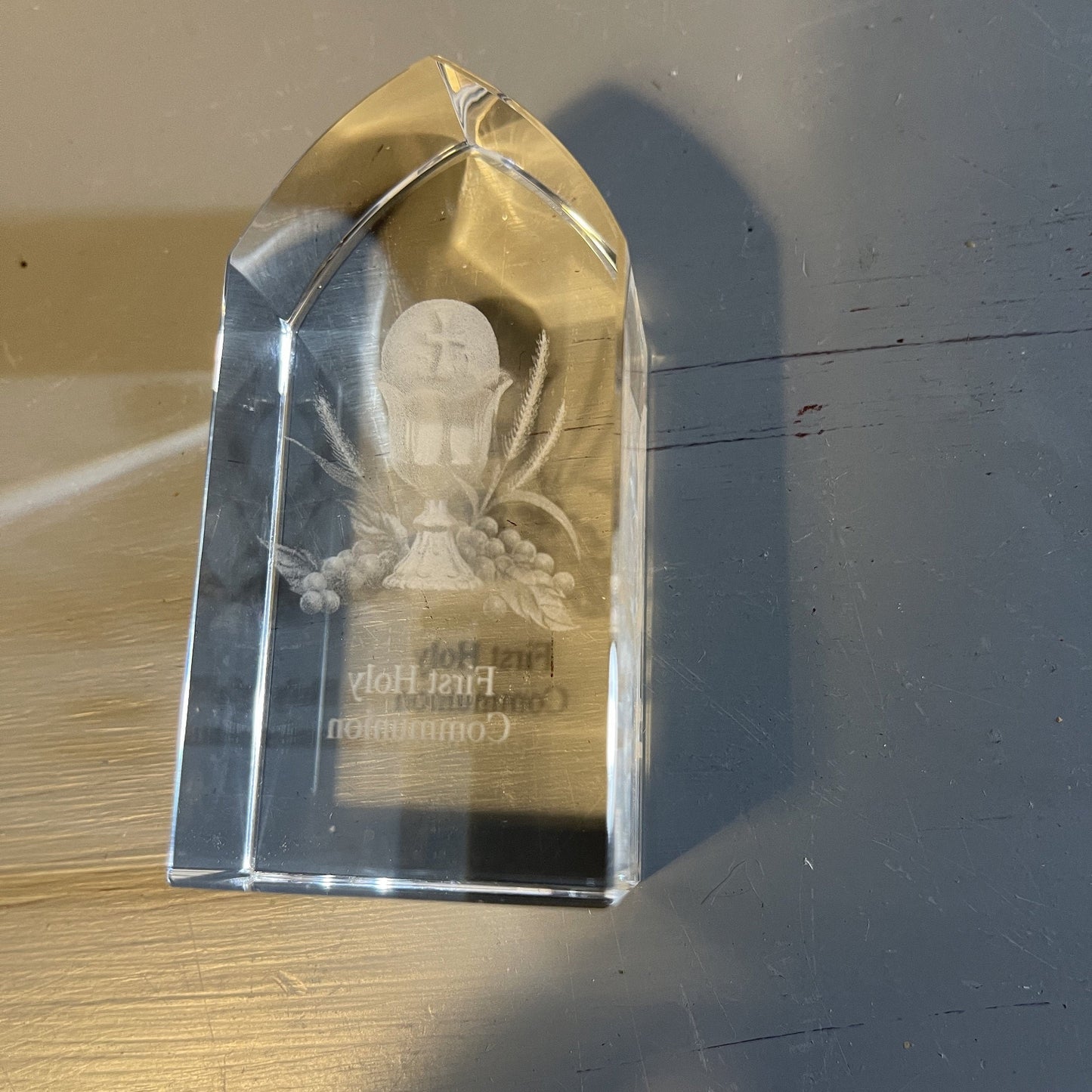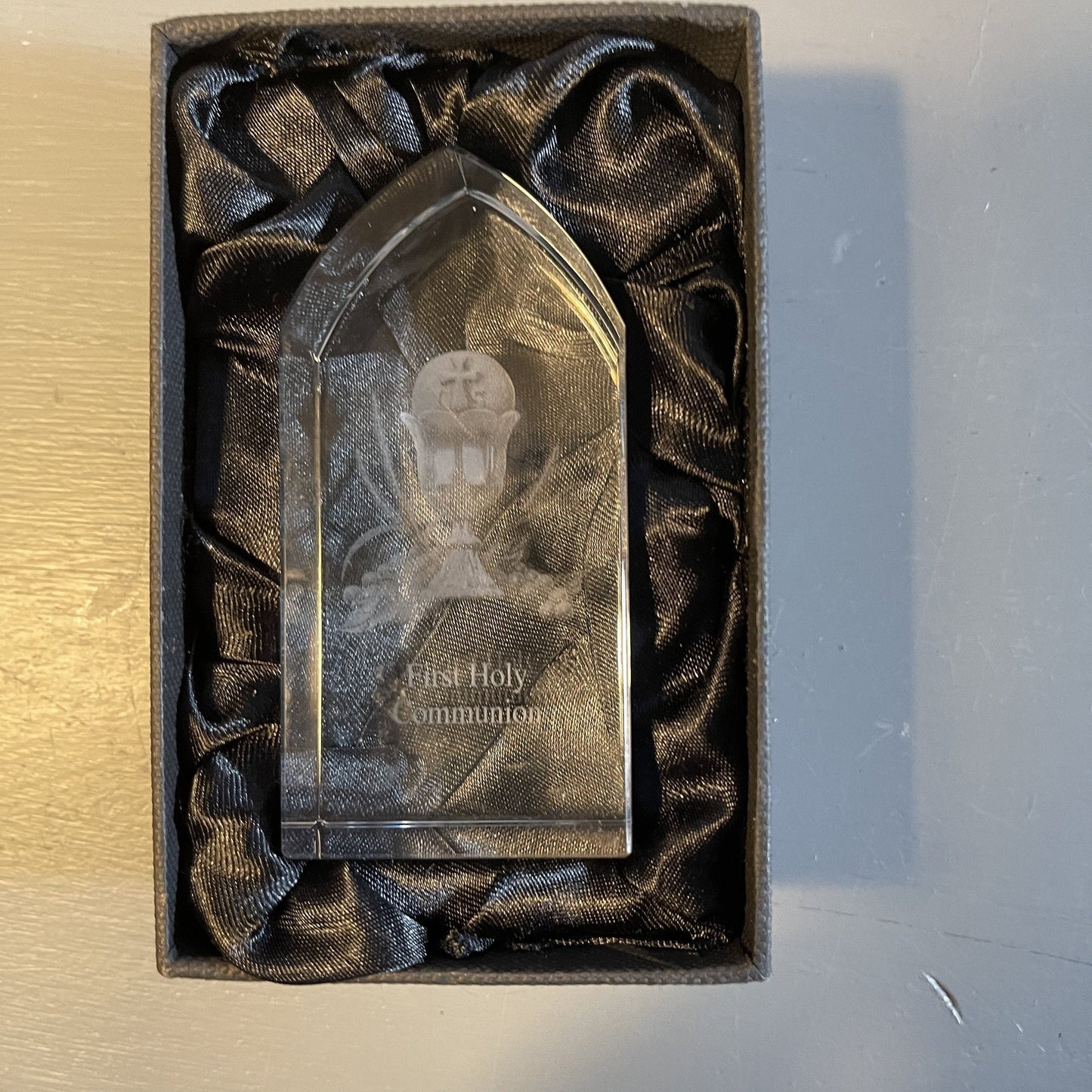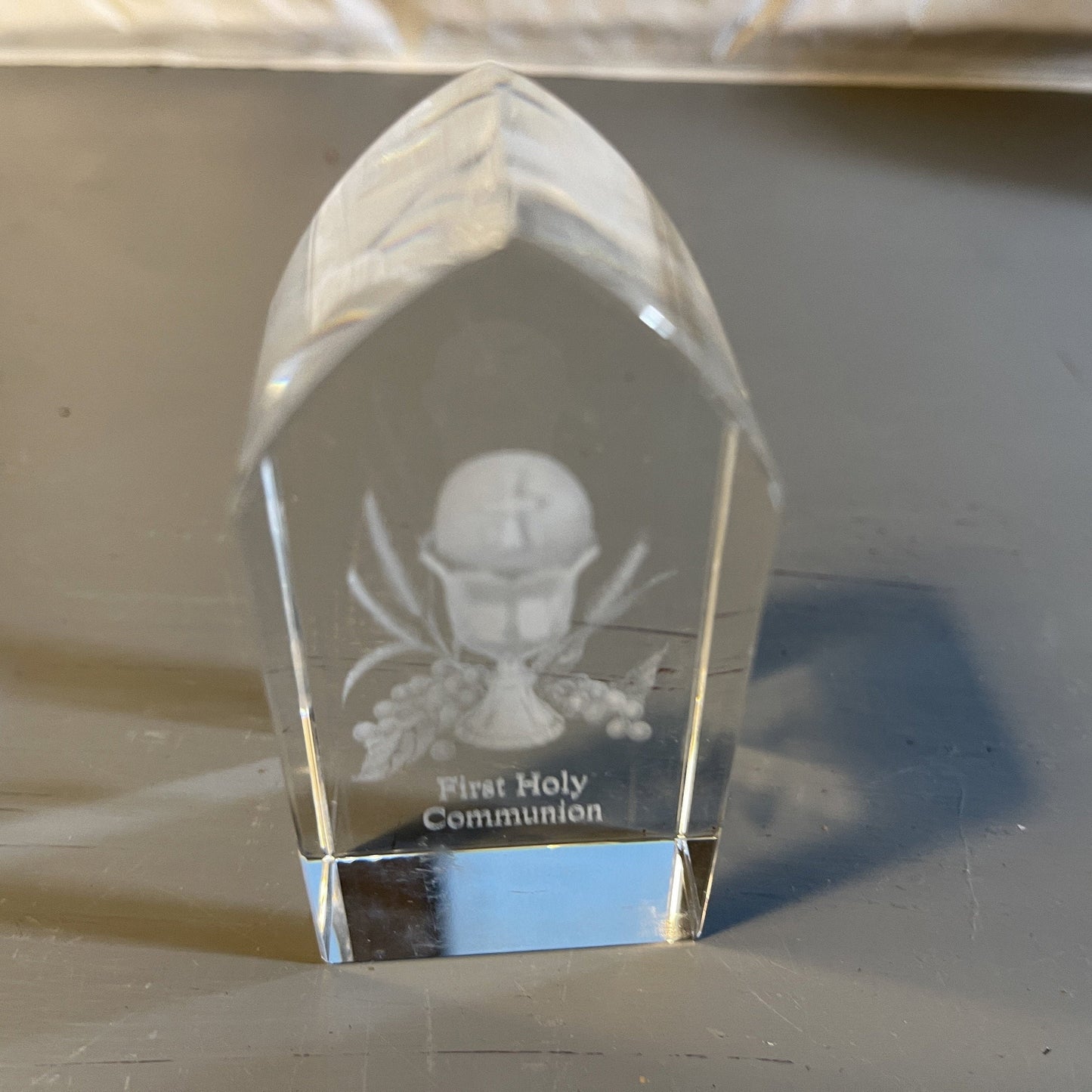 Laser Etched Glass First Holy Communion vintage commemorative By jeweled Cross