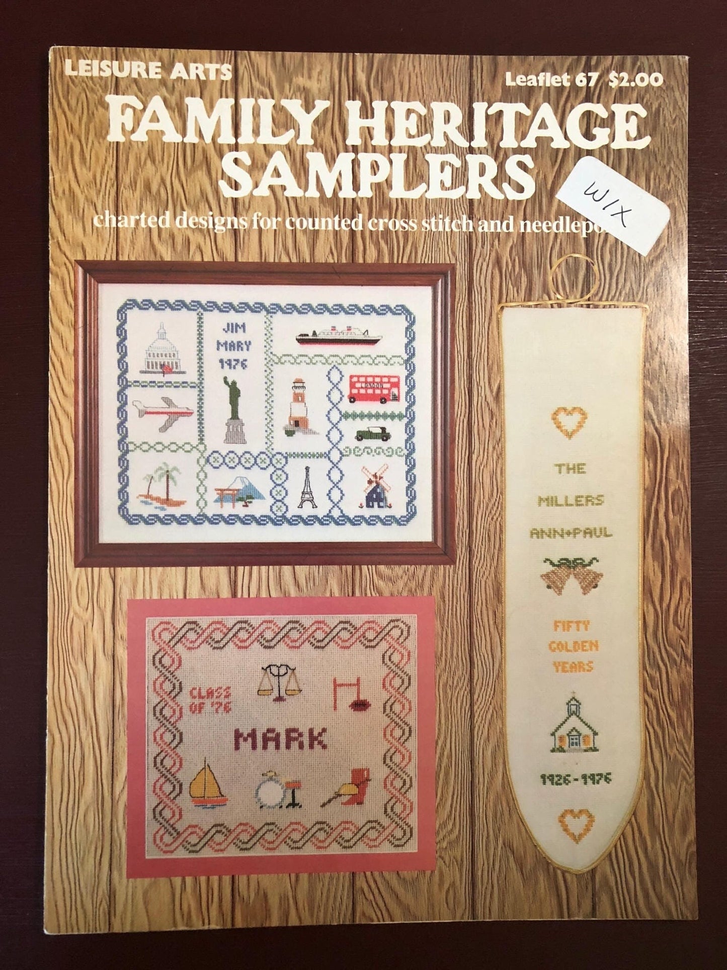 Leisure Arts Family Heritage Samplers Leaflet 67 Vintage 1978 charted designs for counted cross stitch and needlepoint