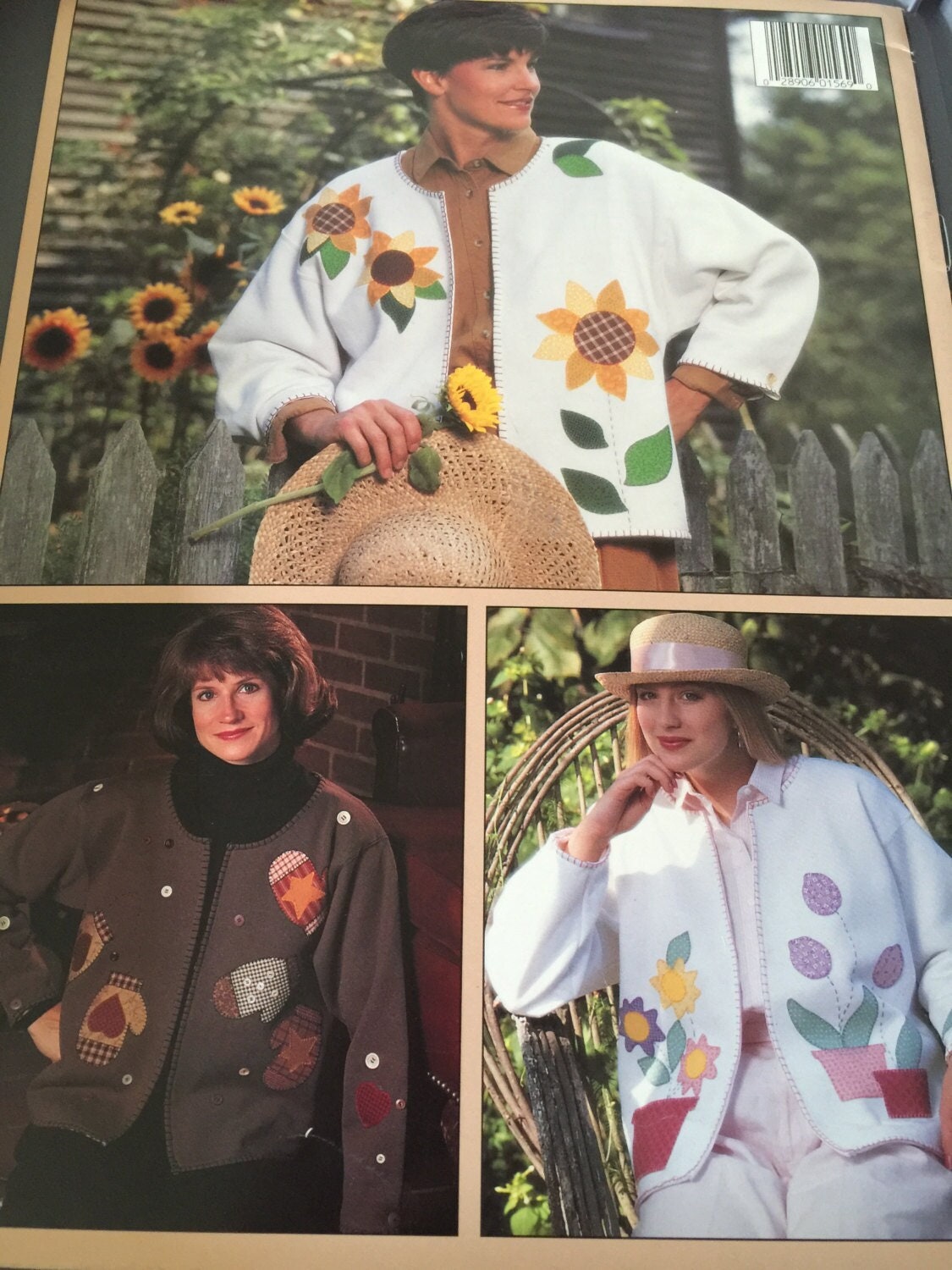 Leisure Arts Seasonal Cardigans From Sweats featuring 4 seasonal patterns- Pumpkins, sunflowers, mittens and flowers