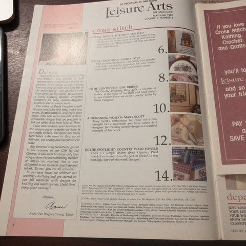 Leisure Arts, The Magazine, Year 1987, 5 issues, Cross Stitch Designs Plus*