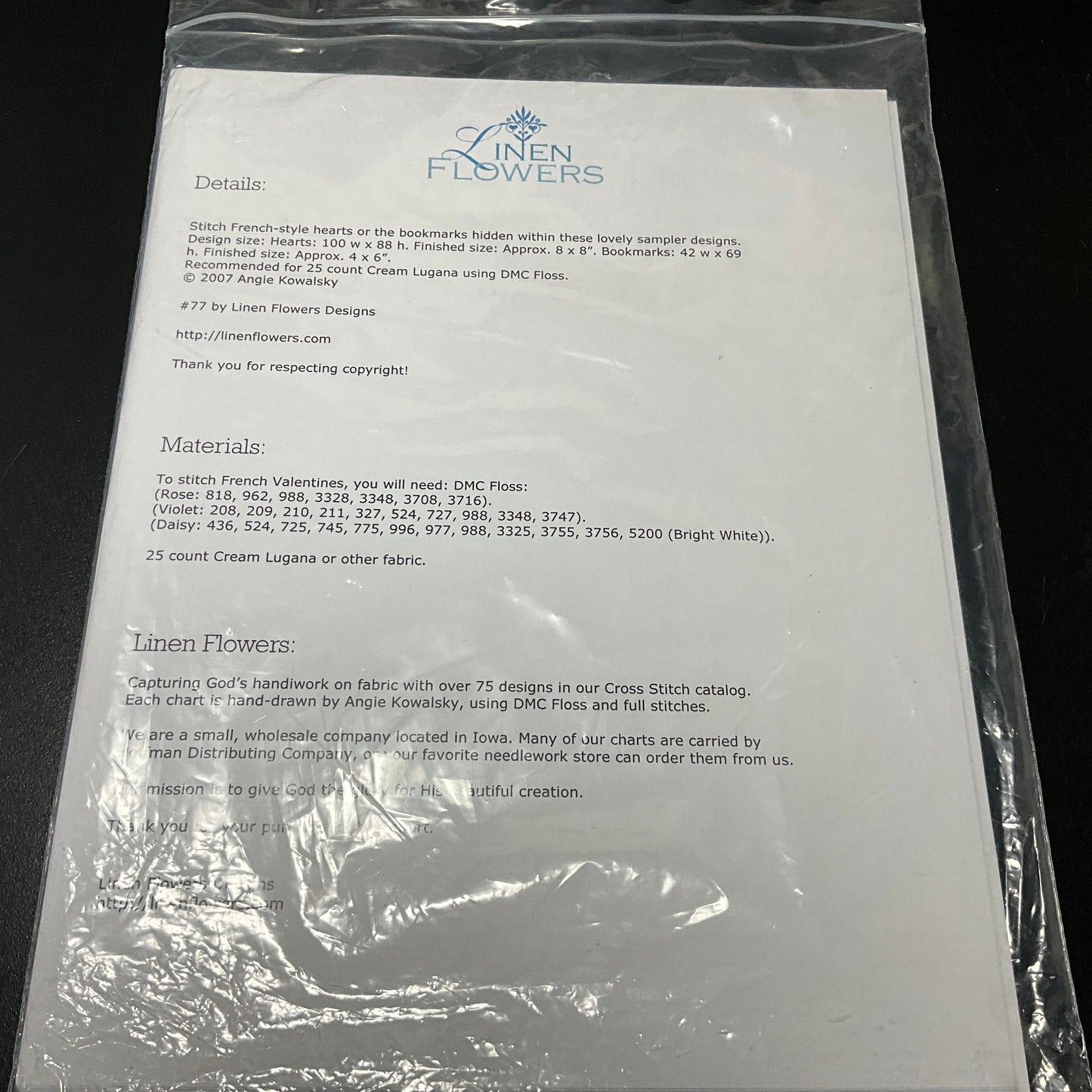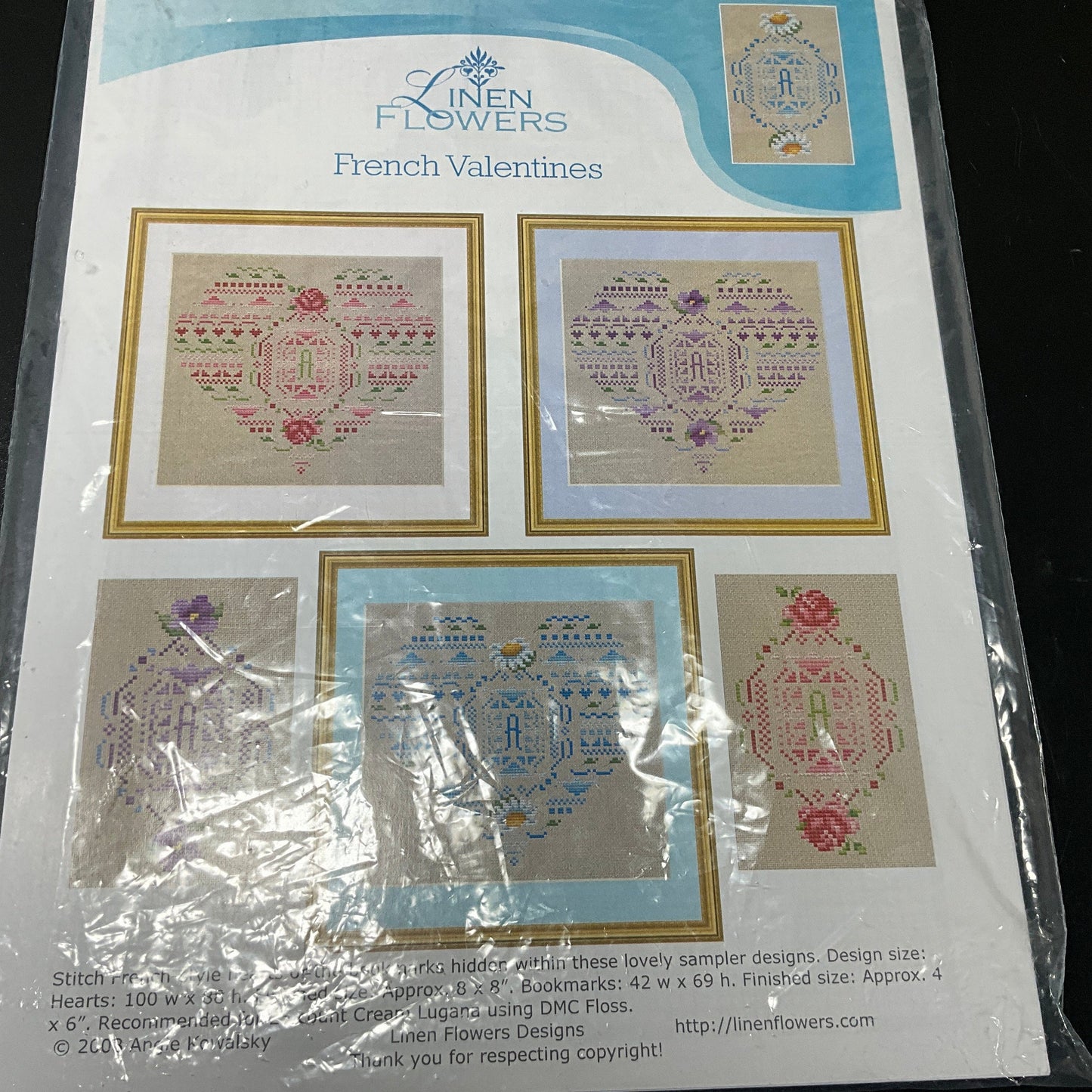 Linen Flowers Designs French Valentines 2008 counted cross stitch designs chart