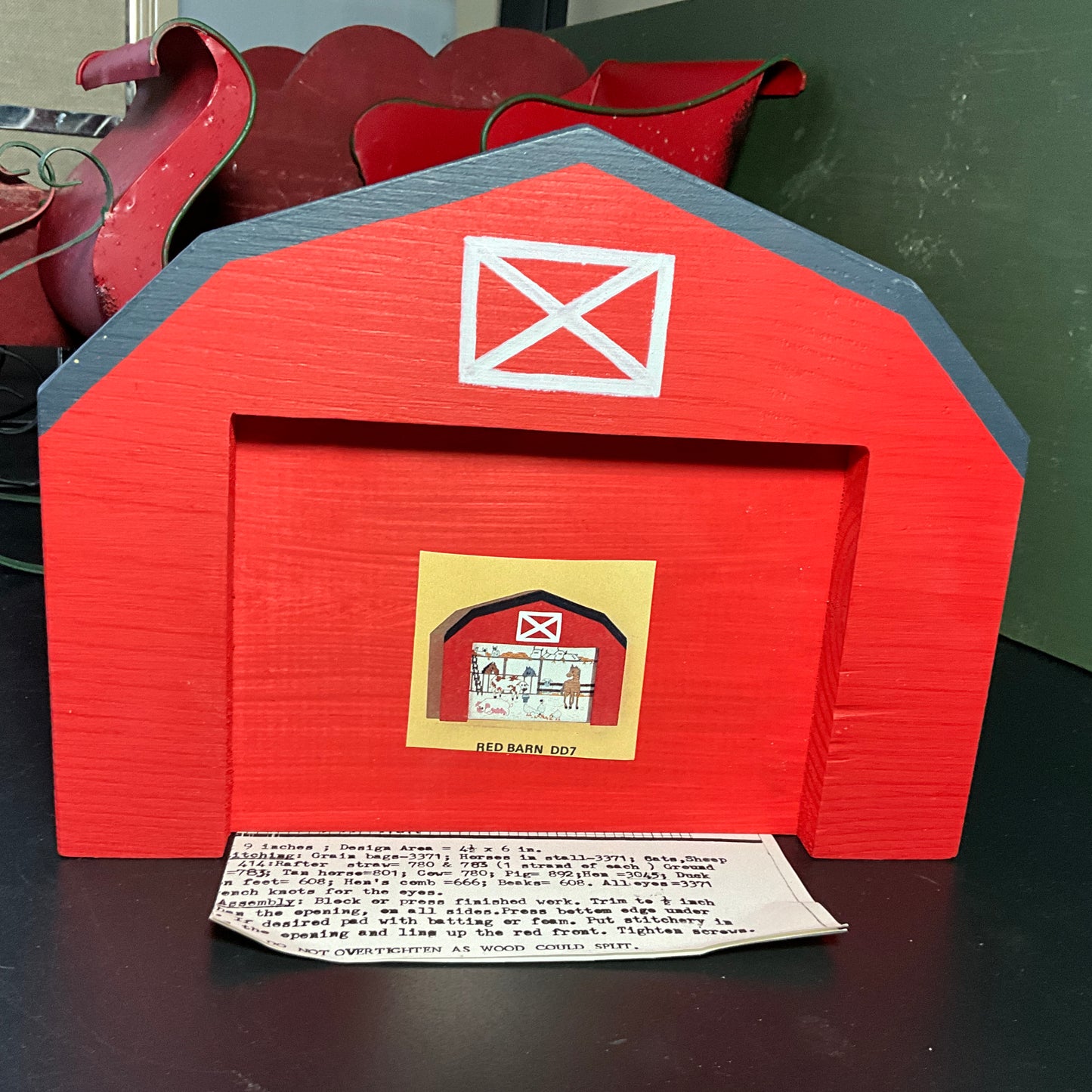 Little red barn vintage 1982 painted wooden cutout frame with farm animal chart*