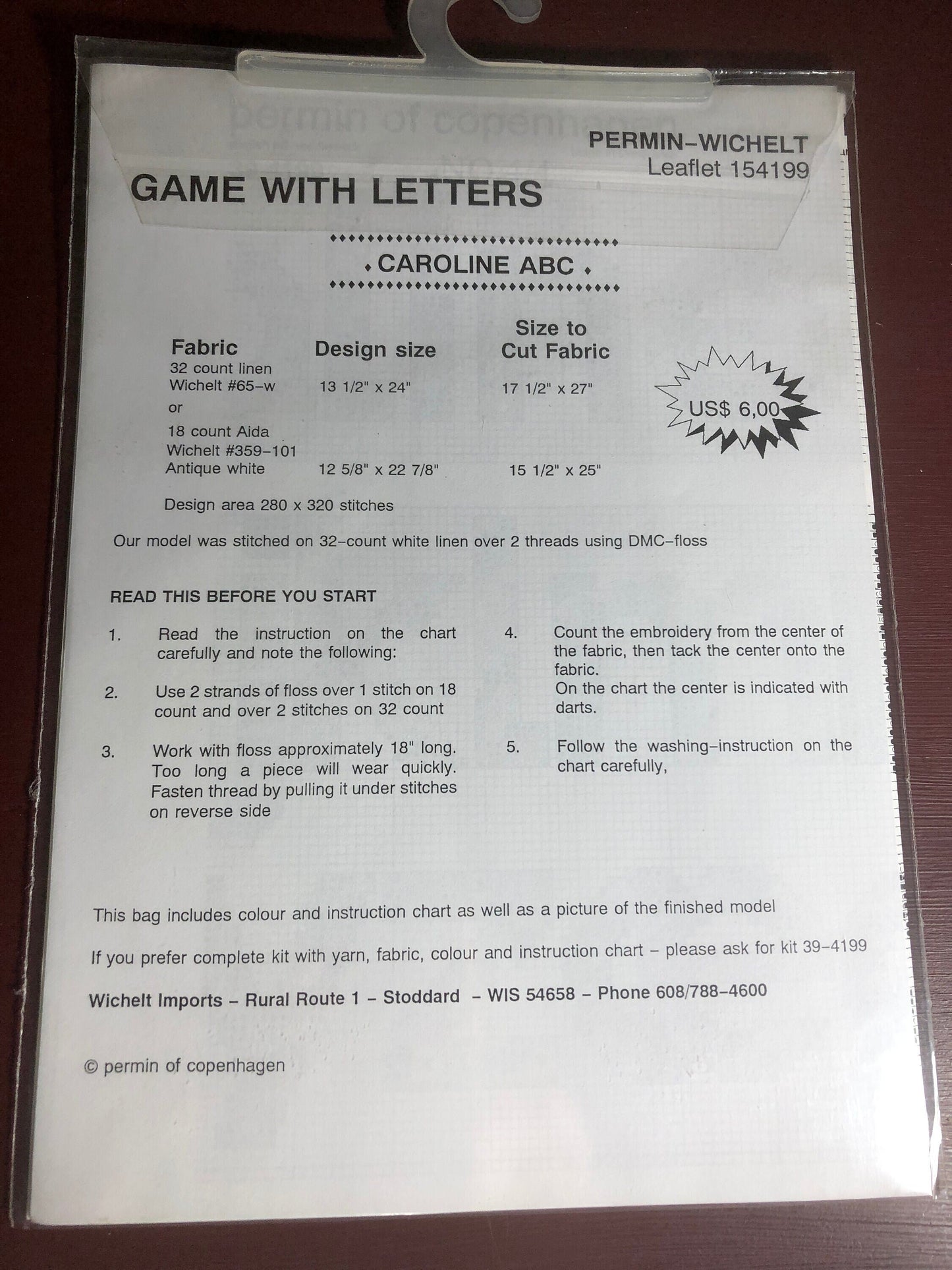 Permin of Copenhagen, Caroline ABC, Wichelt, Counted Cross Stitch Chart, Leaflets 154199