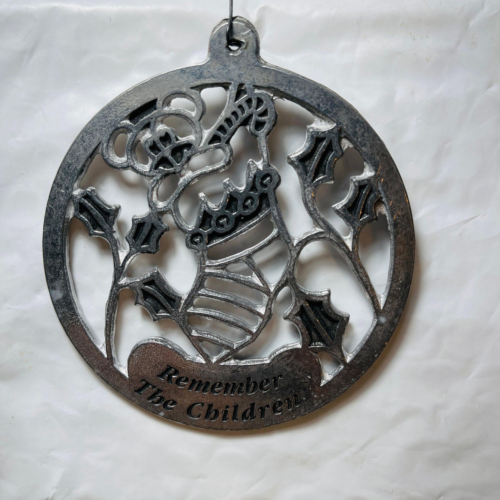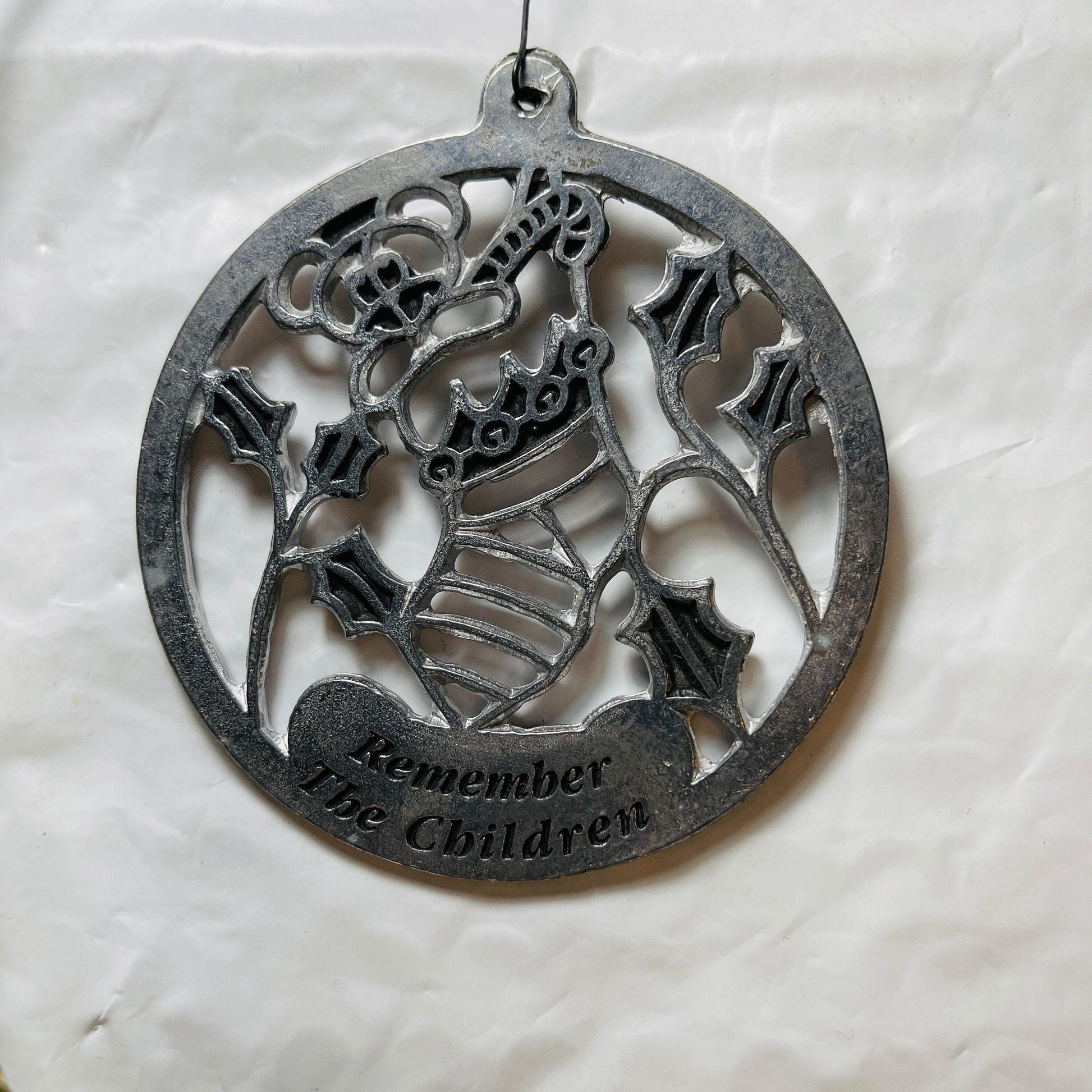 Pewter, Remember the Children, Merry Christmas, Dated 1983, Ornament