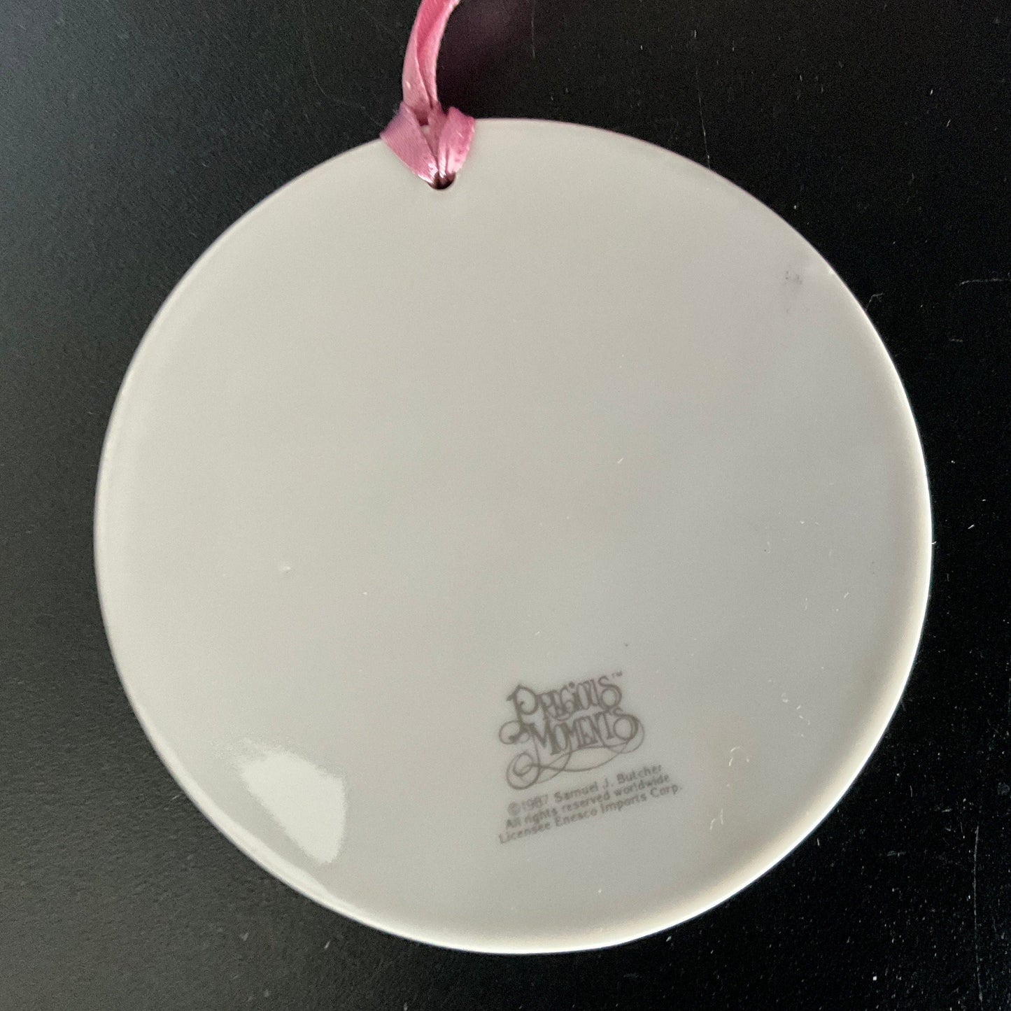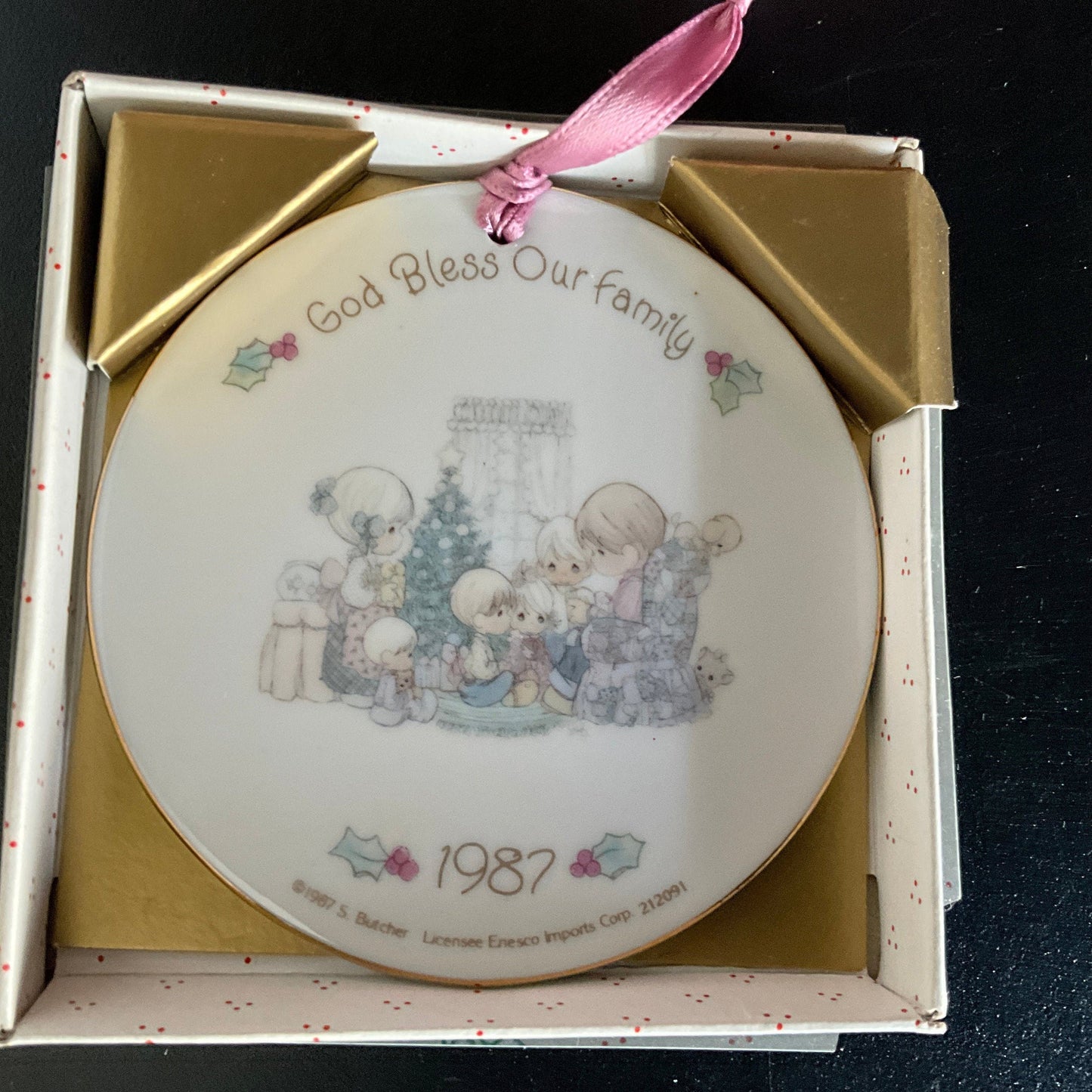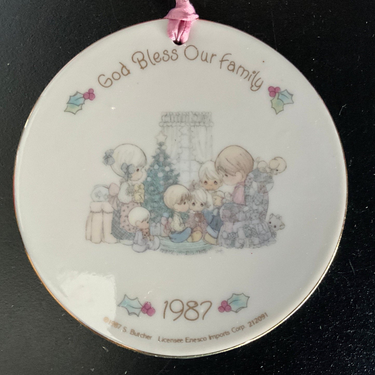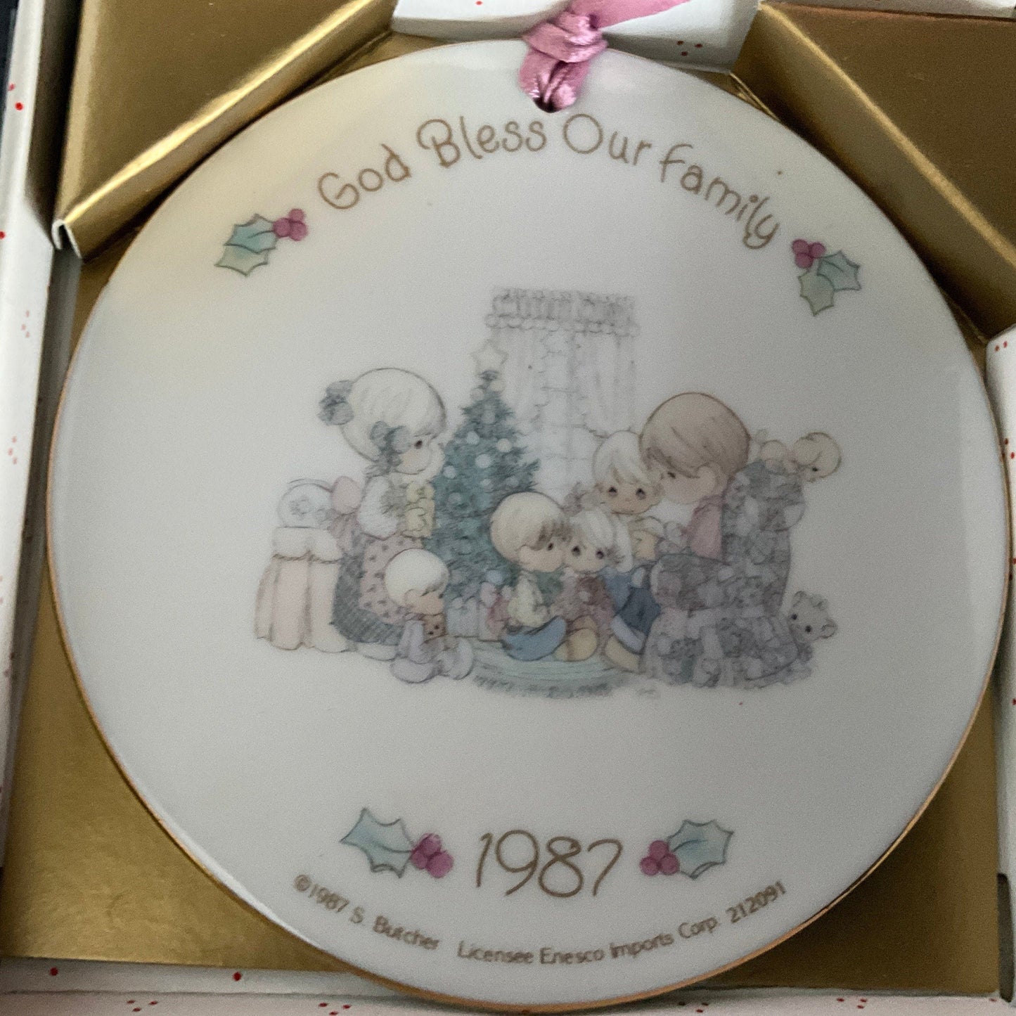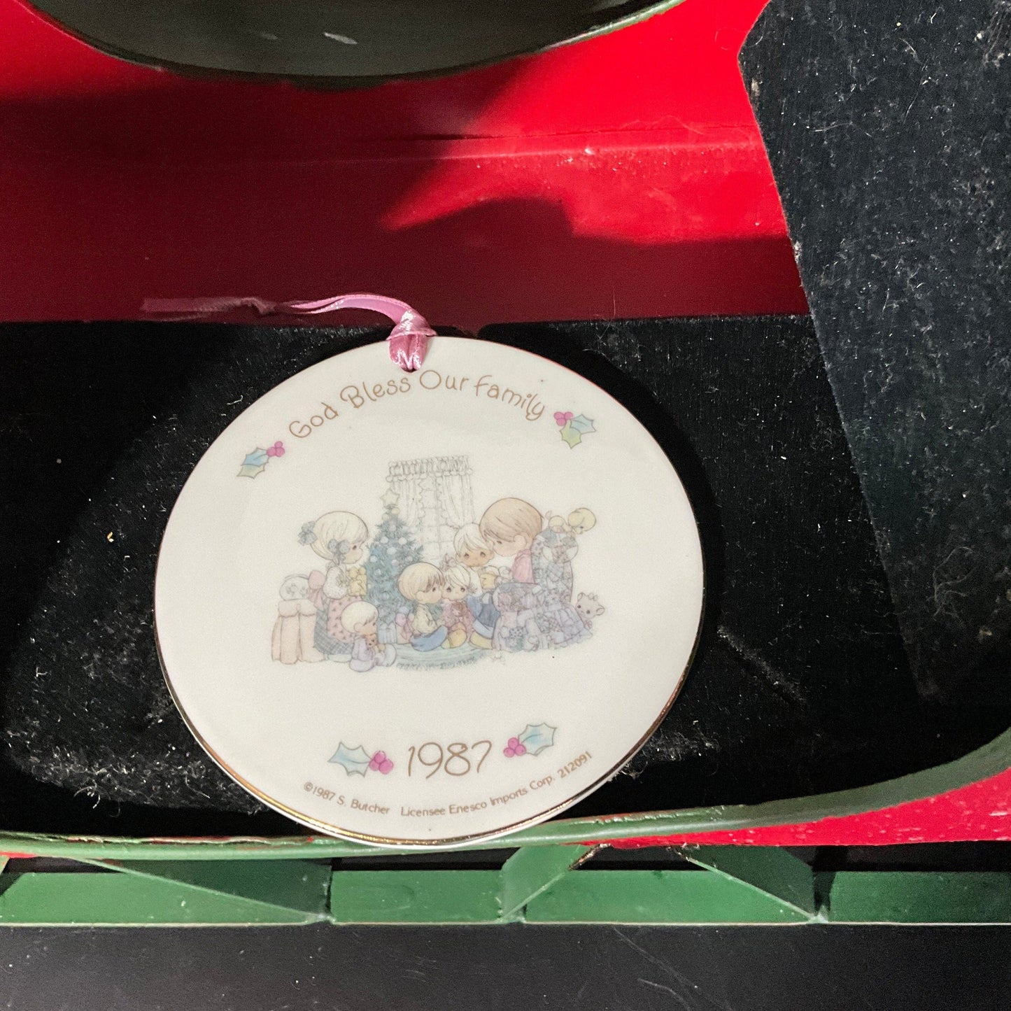 Precious Moments God Bless Our Family dated 1987 porcelain Christmas ornament