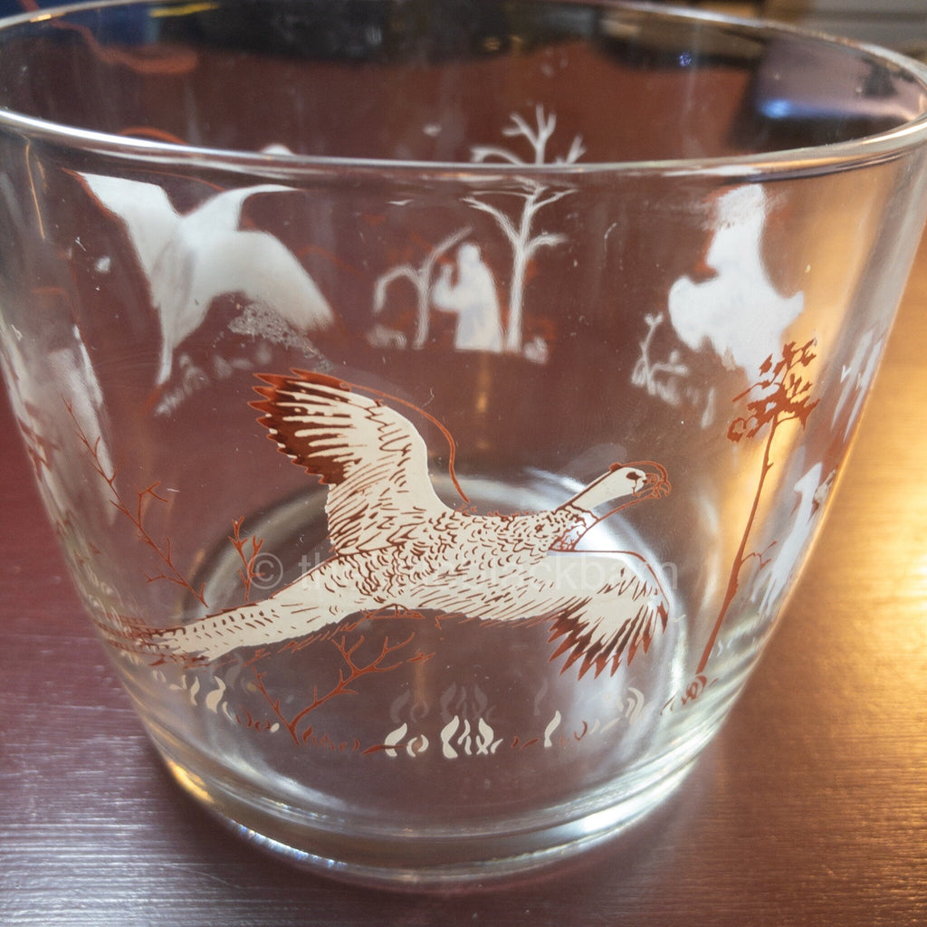 Ringneck Fowl Hunting Motif, Vintage Glass Bowl