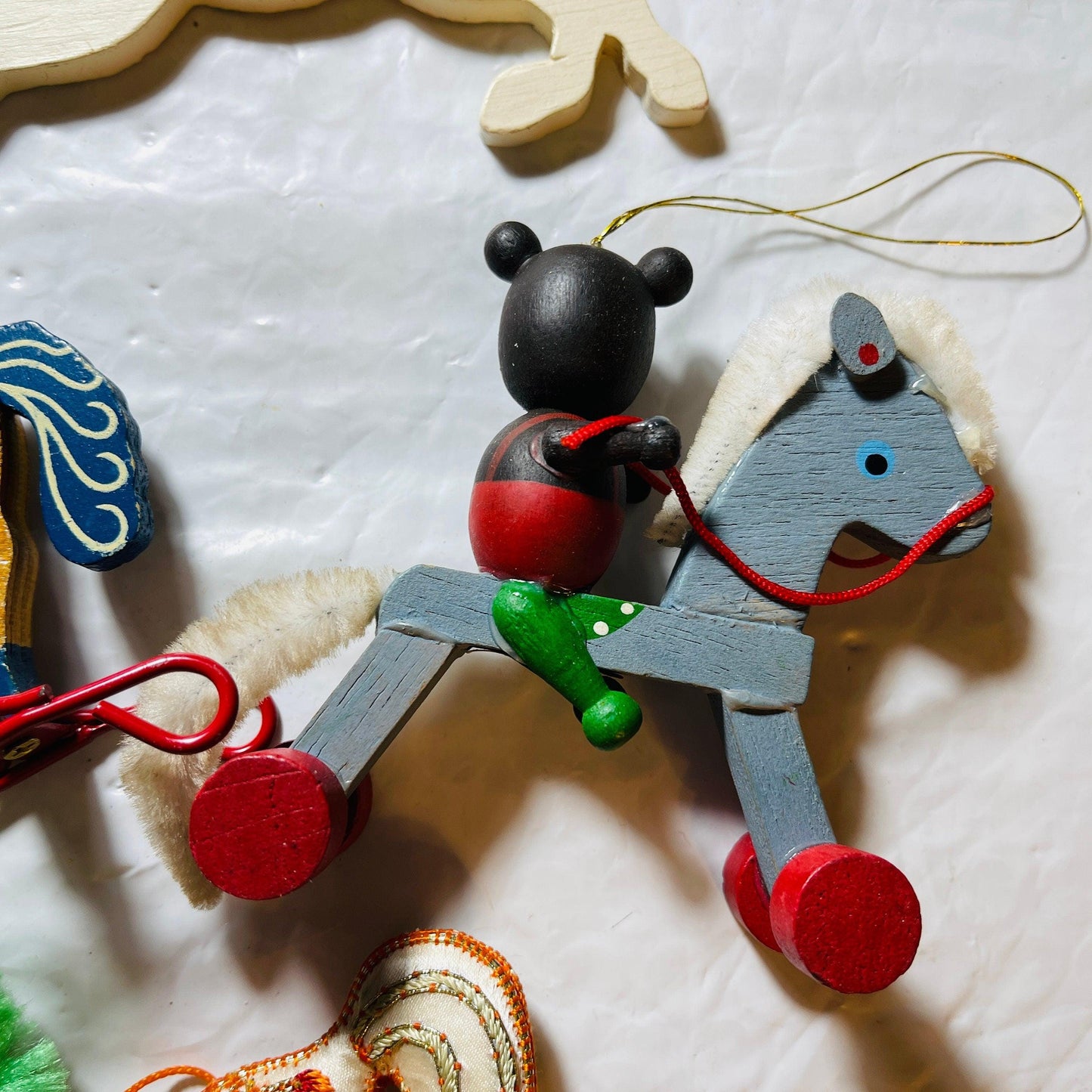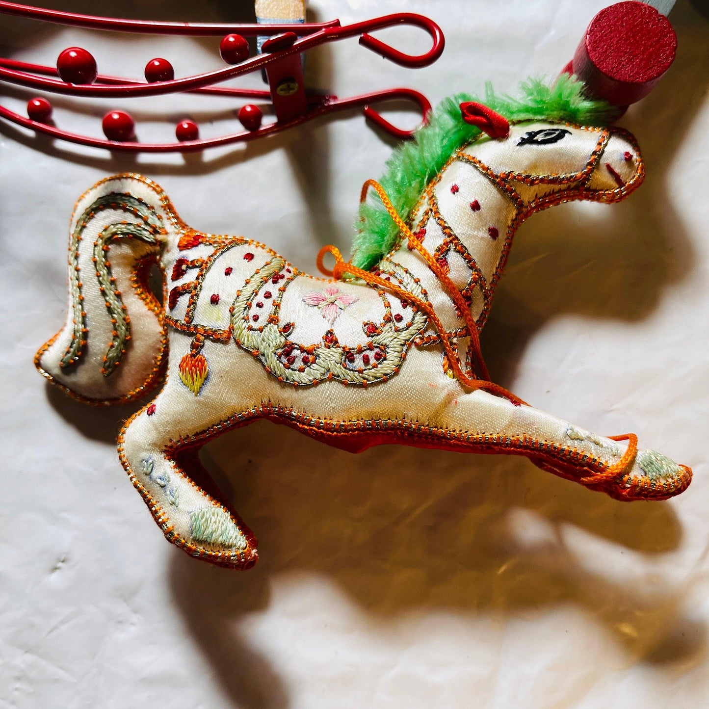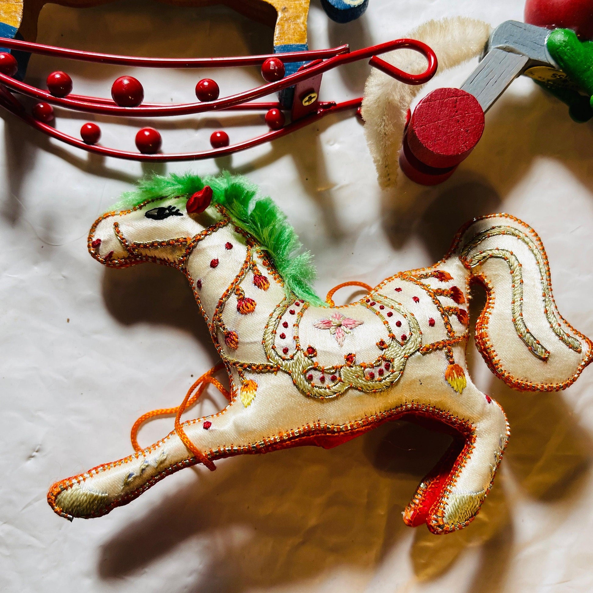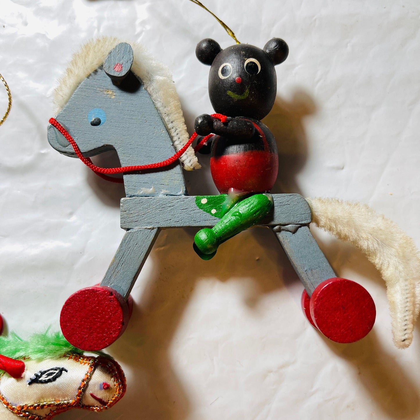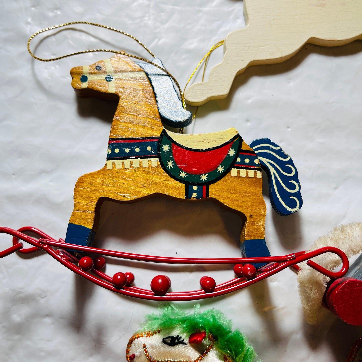 Rocking Horse, Set of 4, Wood, Metal and Fabric, Ornaments
