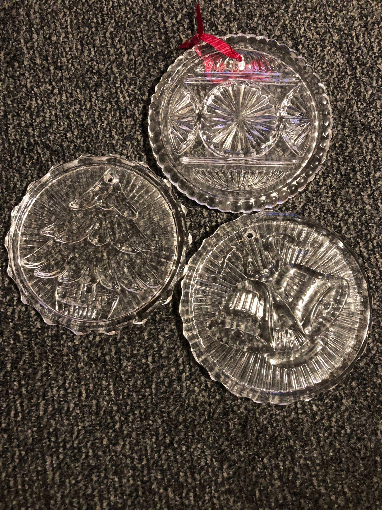 Round Glass Christmas Tree, Bells, and Snowflakes, Set of 3, Vintage Christmas Ornaments,