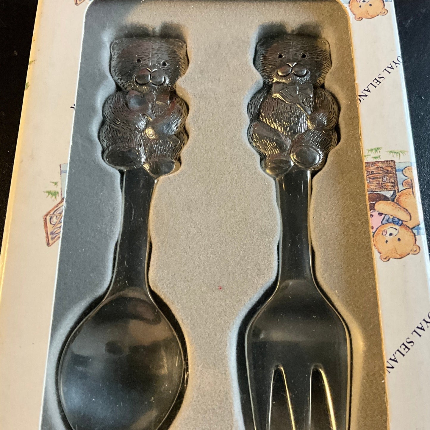 Royal Selangor pewter teddy bears children's fork & spoon set