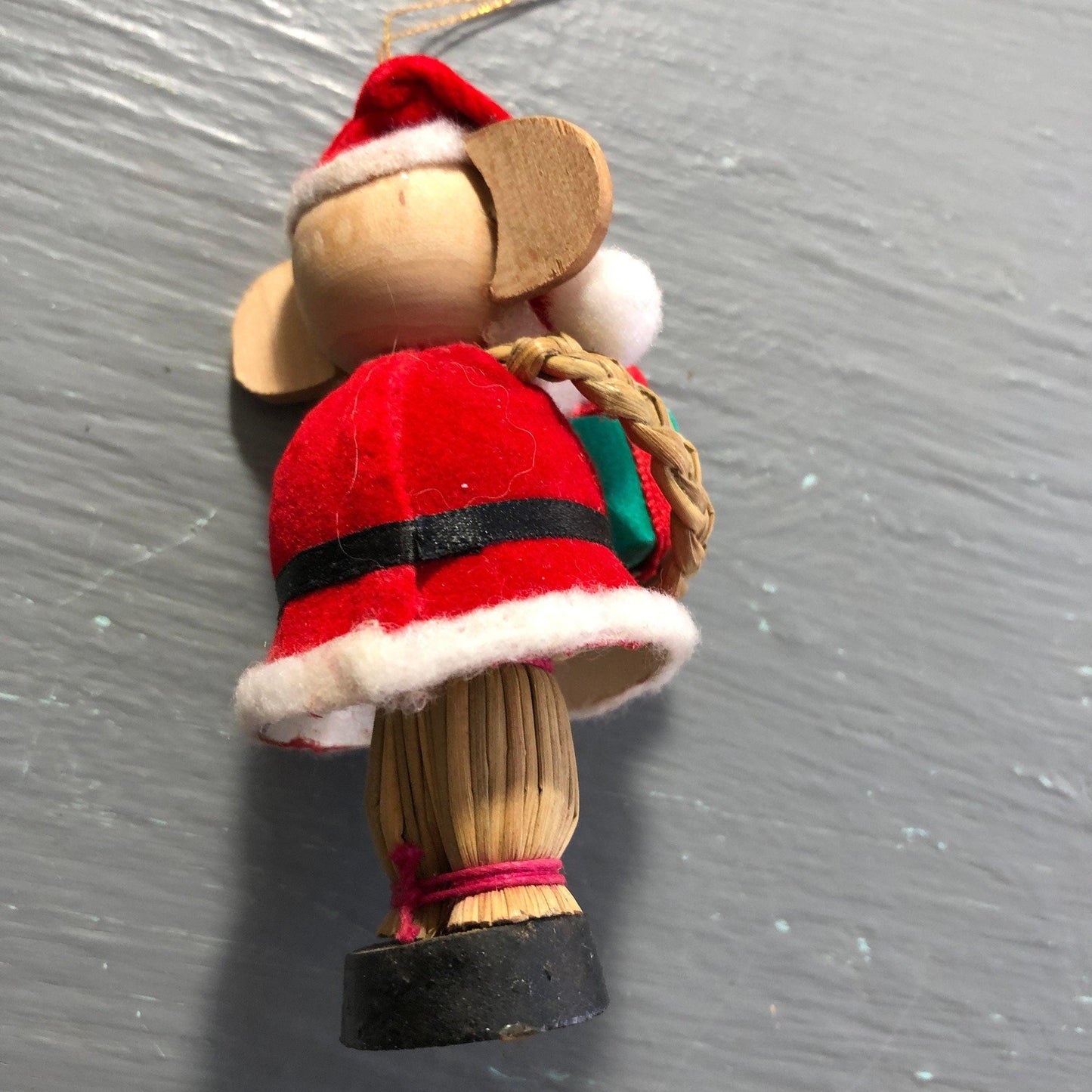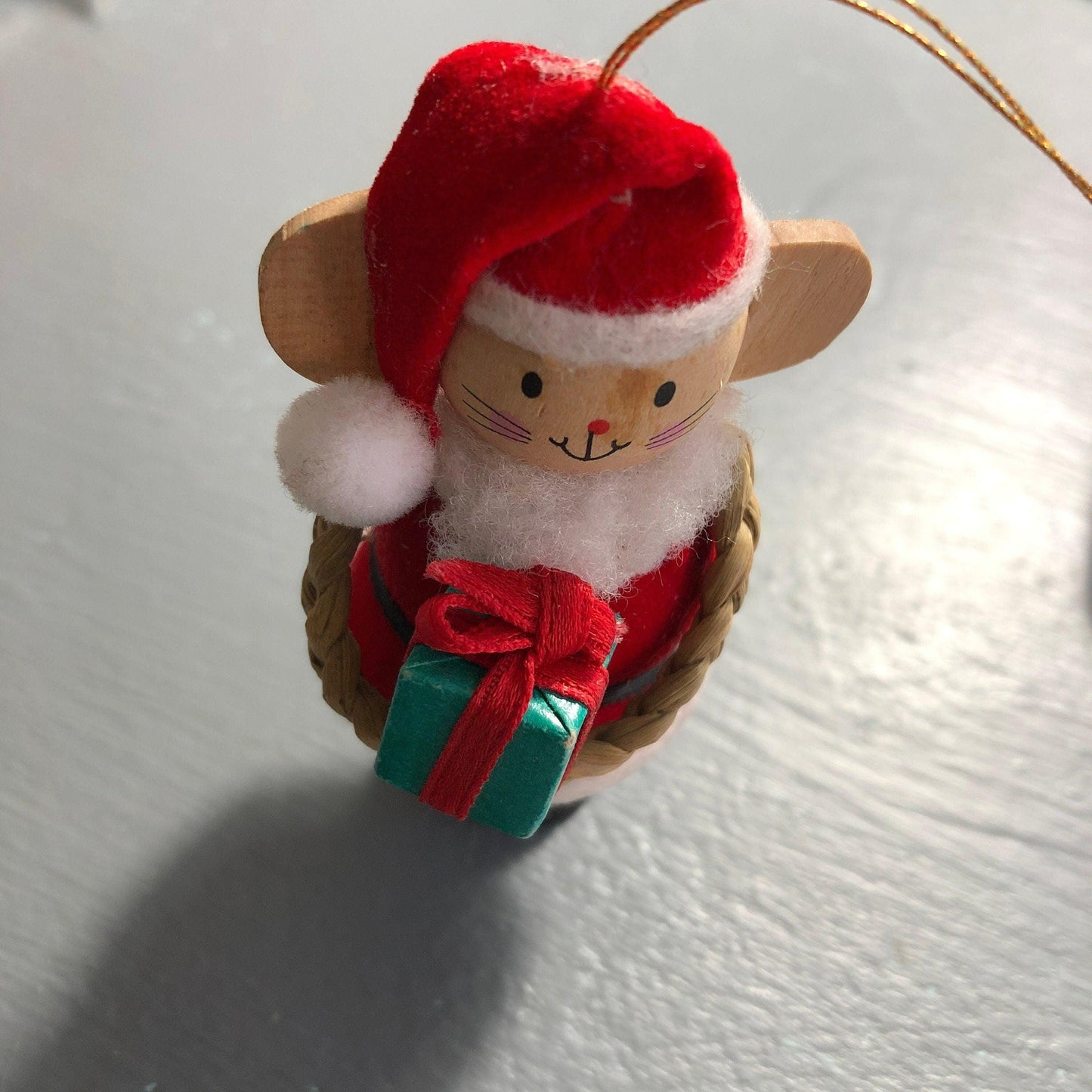 Santa Mouse Vintage Wooden Christmas Tree Ornament