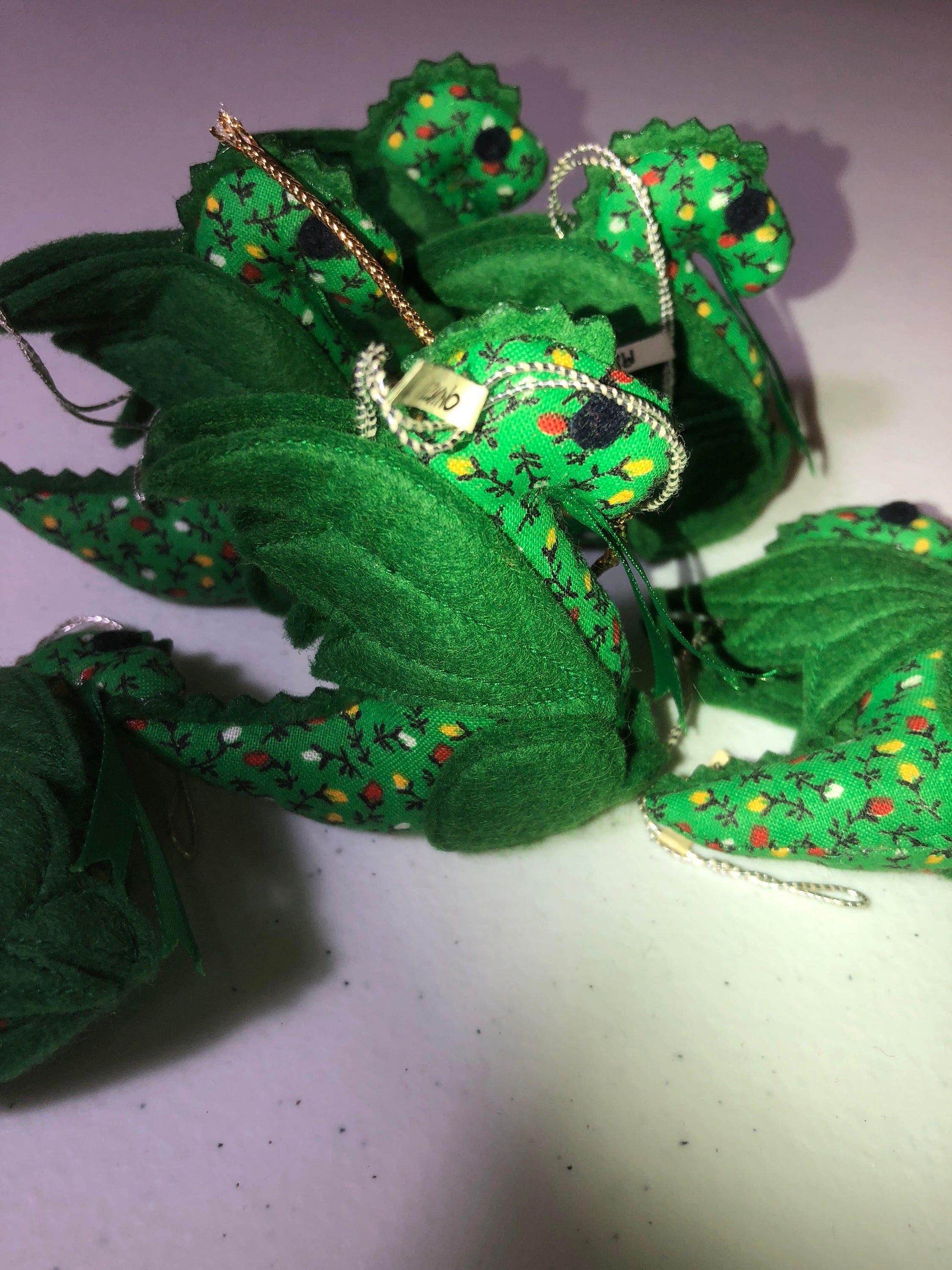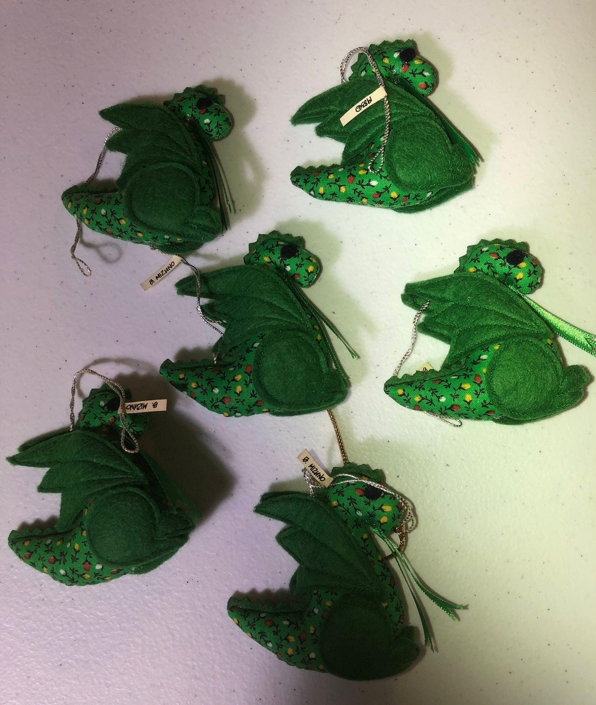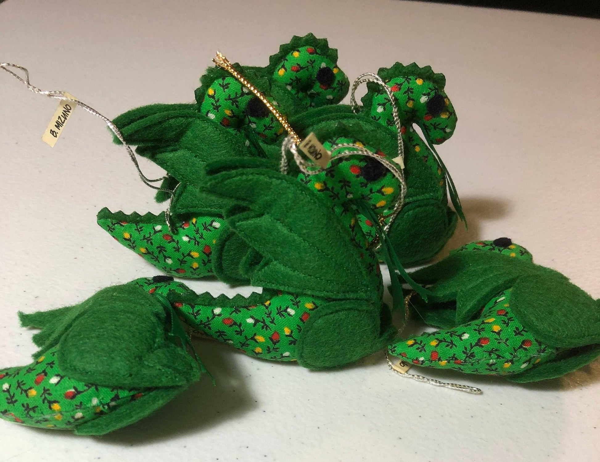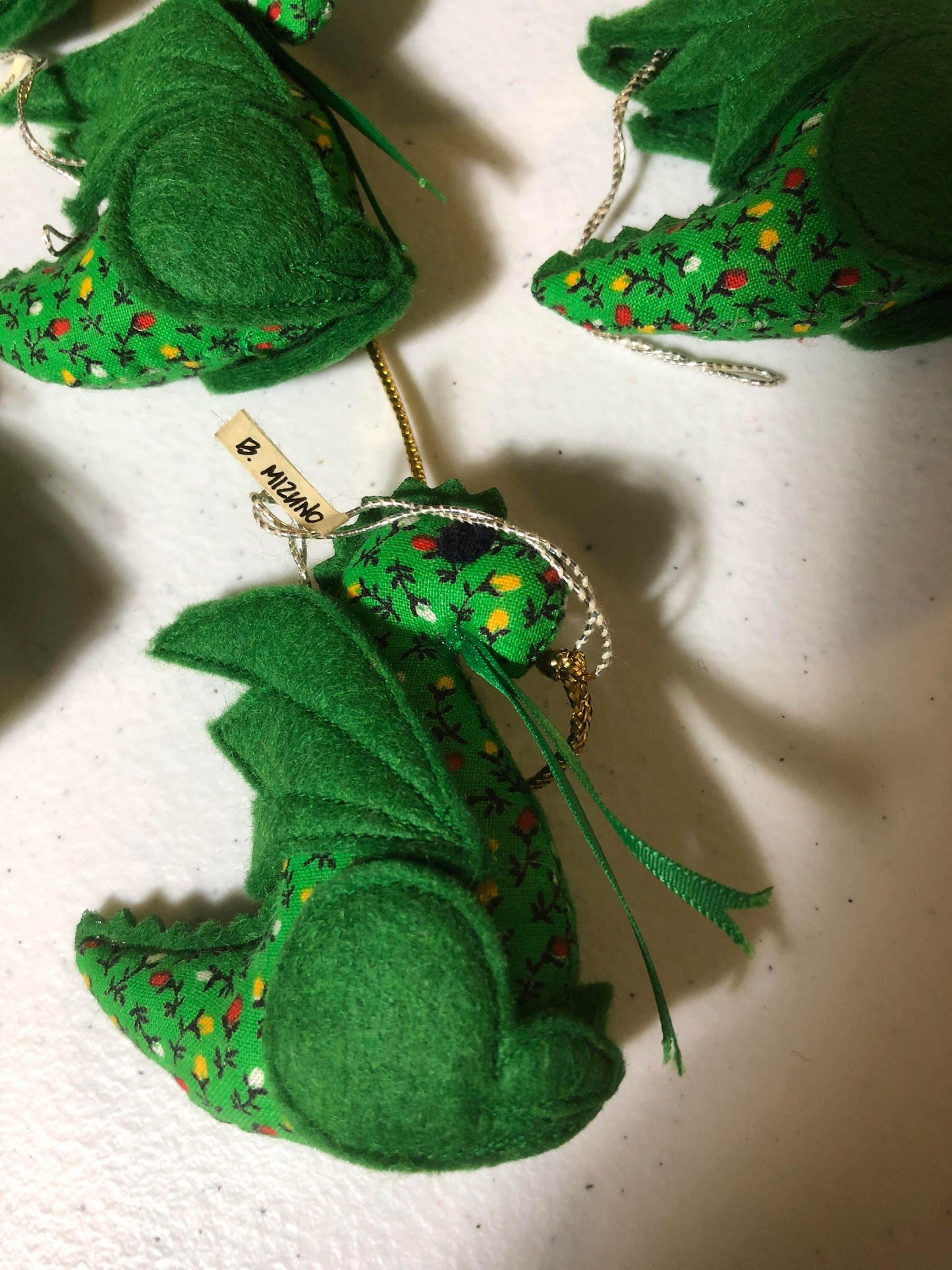 Vintage, 1983, Set of 6, B Mizuno, Green Dragon, Christmas, Ornaments