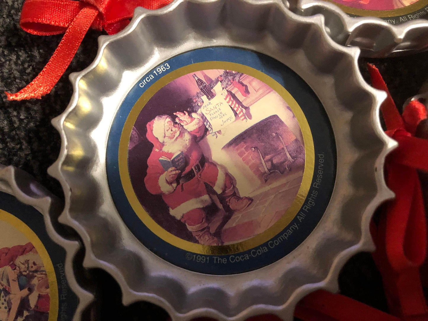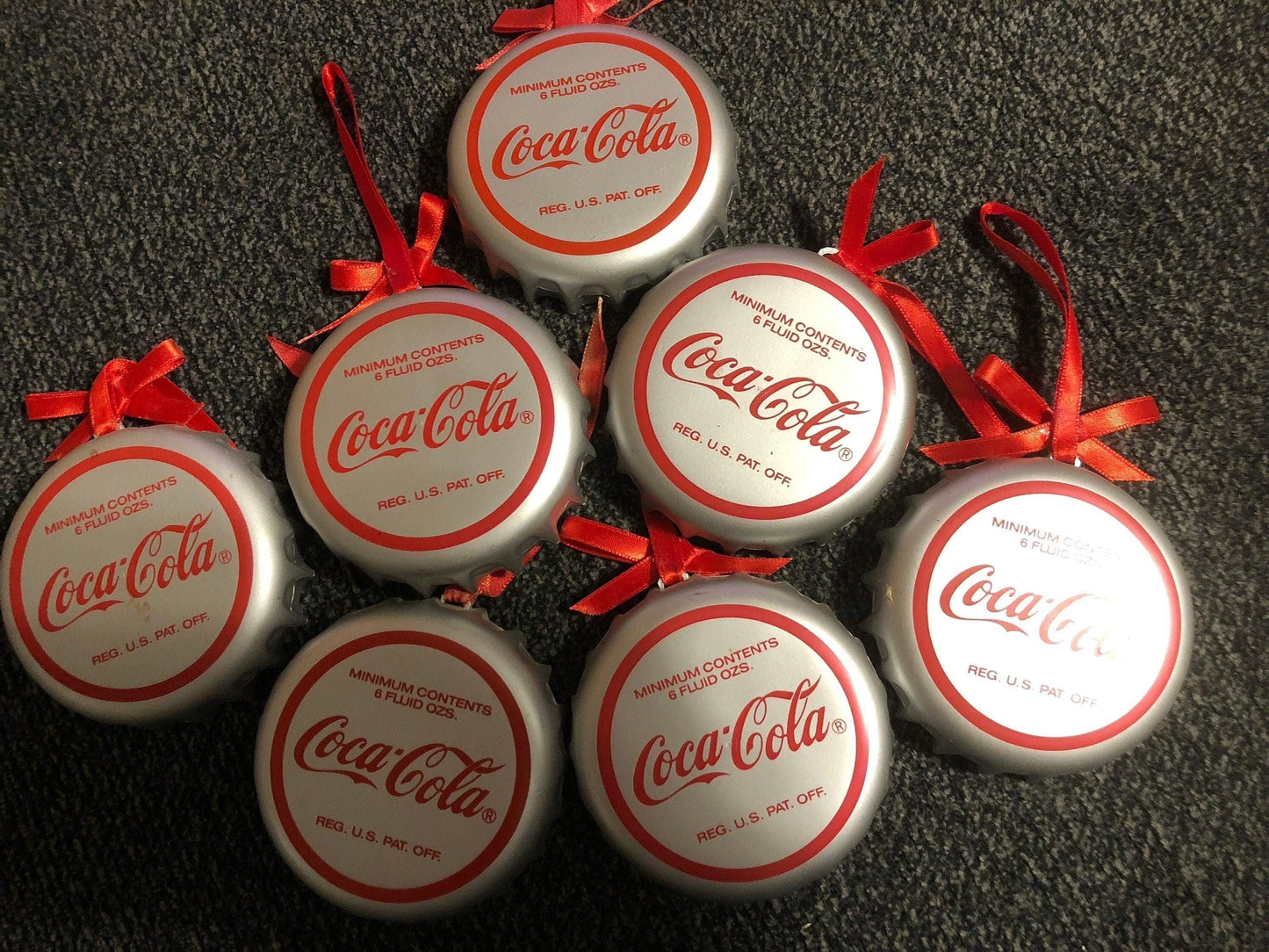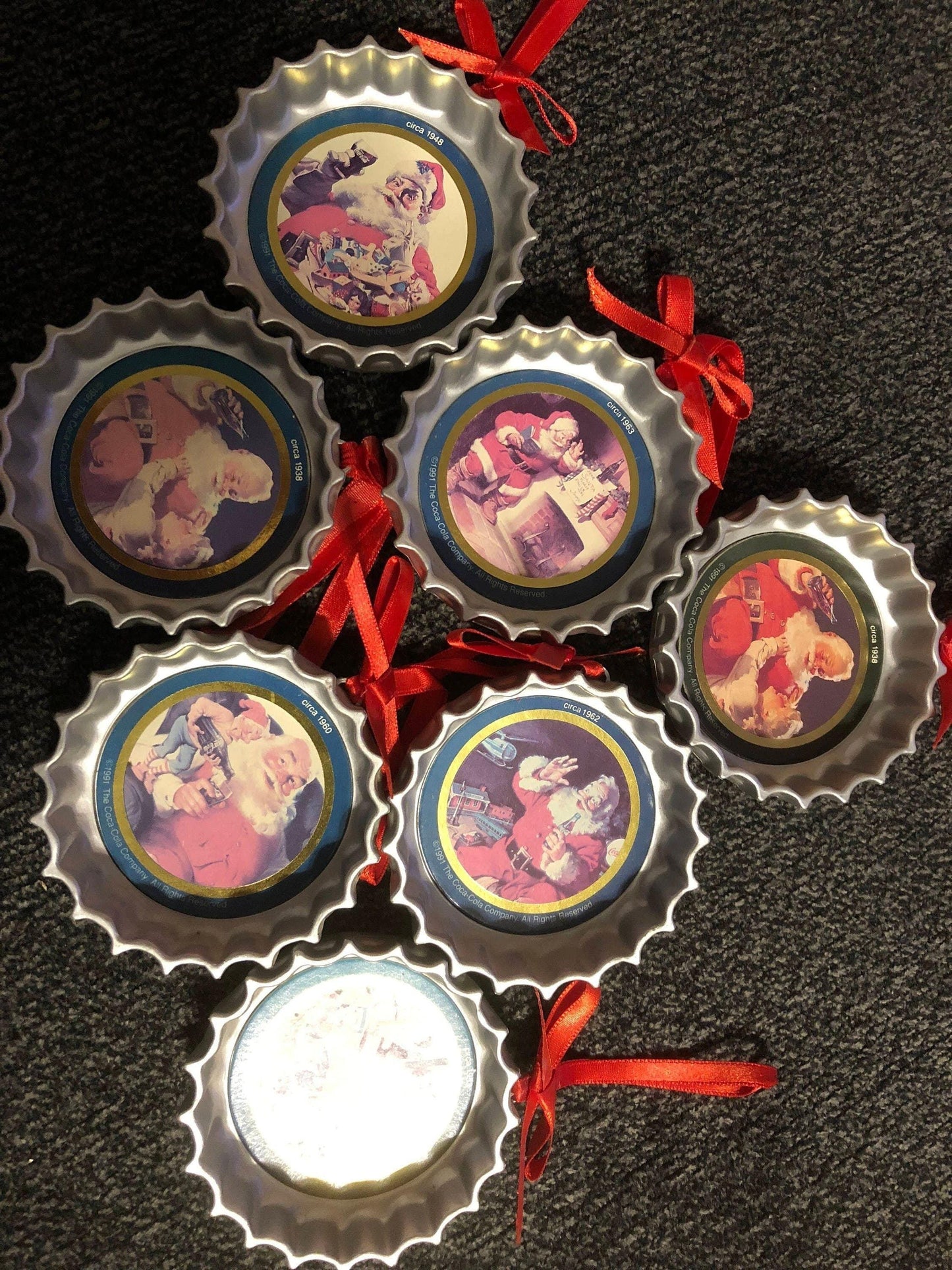Coca Cola Bottle Cap Ornaments Set of 7 Coke Bottle Caps, Vintage Christmas Ornaments