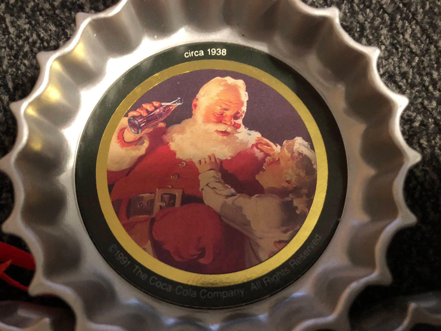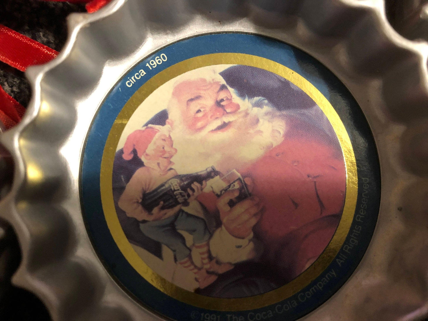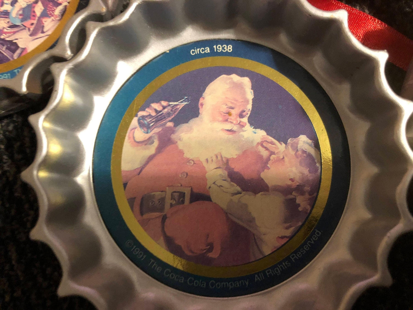 Coca Cola Bottle Cap Ornaments Set of 7 Coke Bottle Caps, Vintage Christmas Ornaments