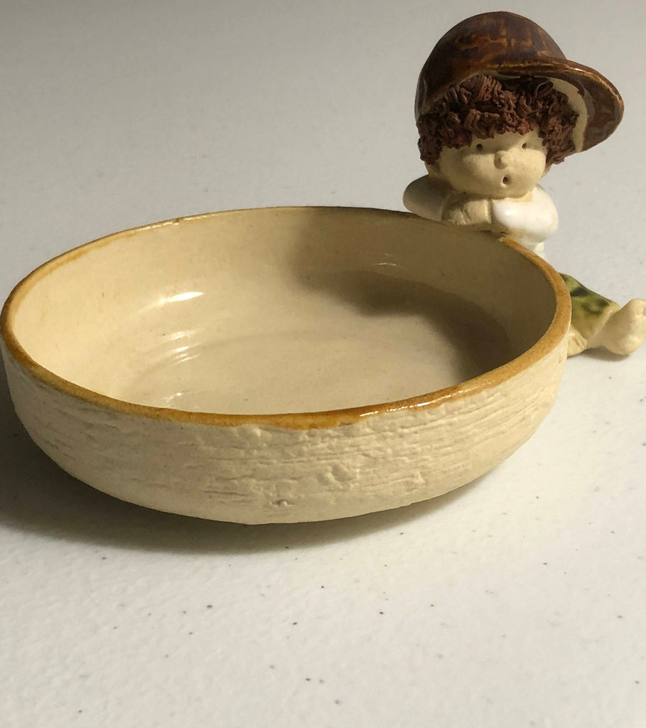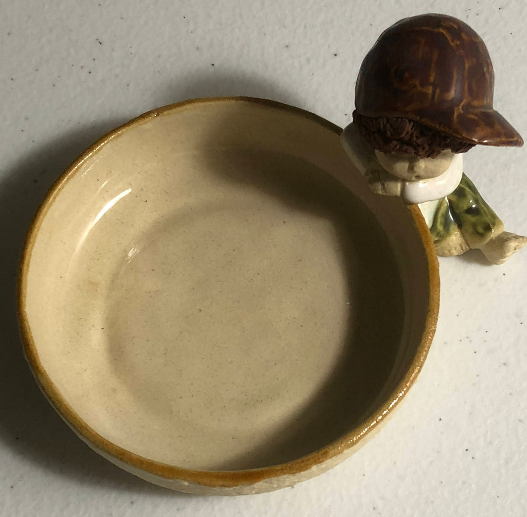 Vintage Small Cute Little Long Hair Boy wearing a Ball Cap Ceramic Jewelry Dish