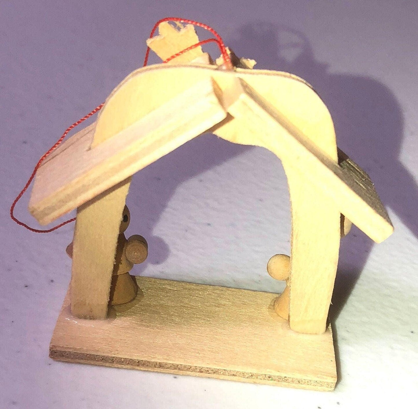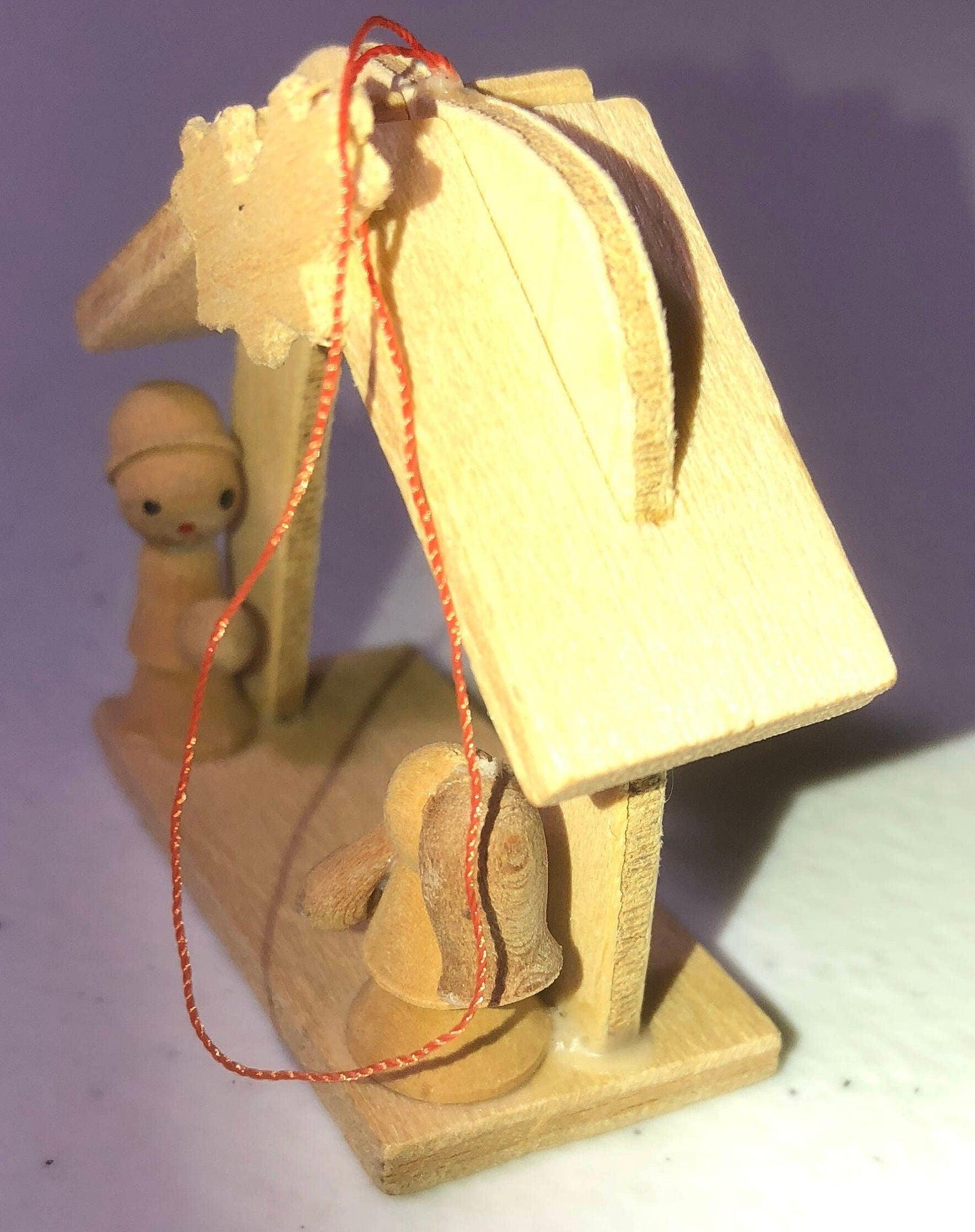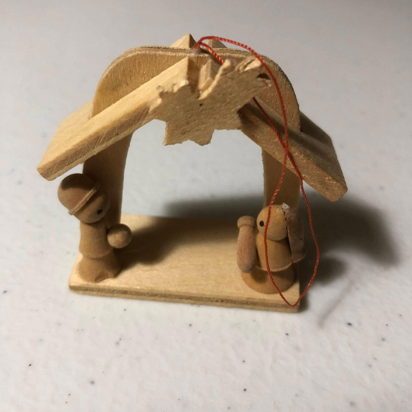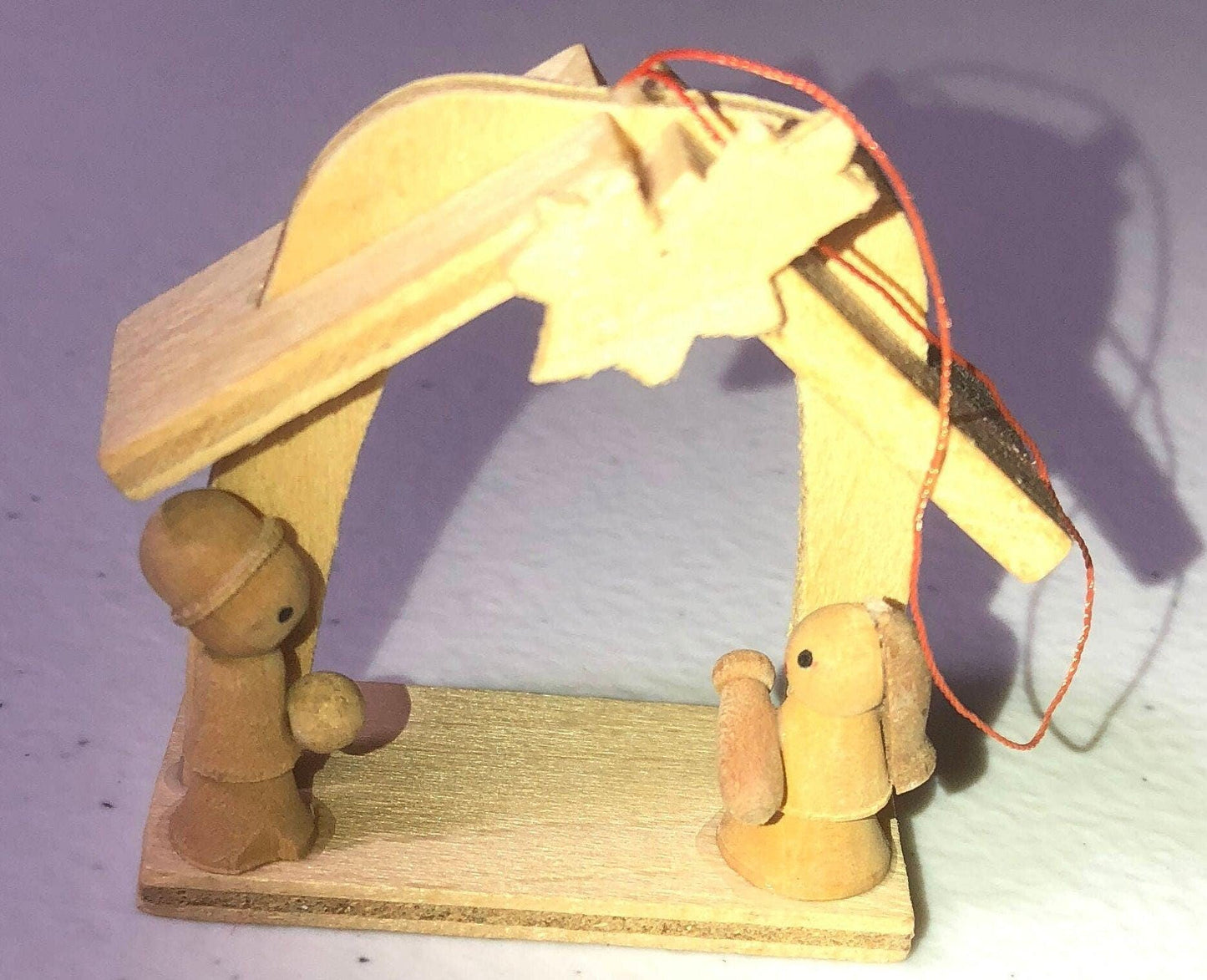 Small Wooden Nativity Scene, Vintage, Unique, Christmas, Ornament