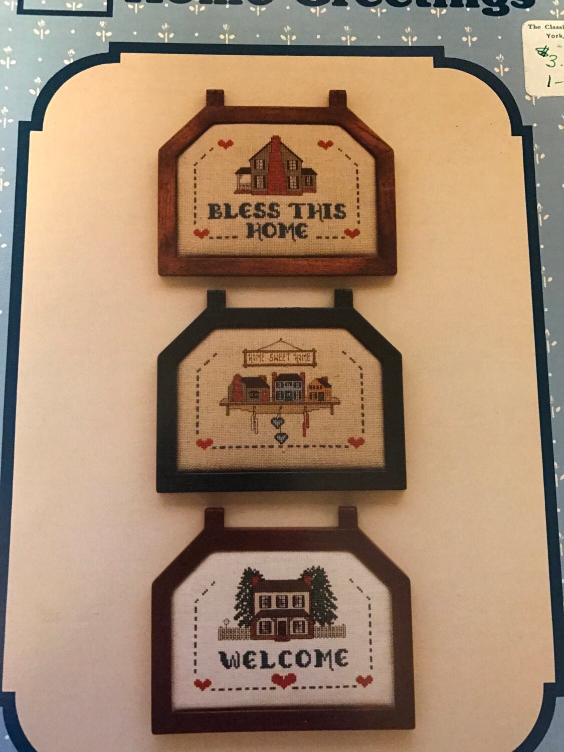 Vintage counted cross stitch Home Greetings pattern by Spare Time Originals