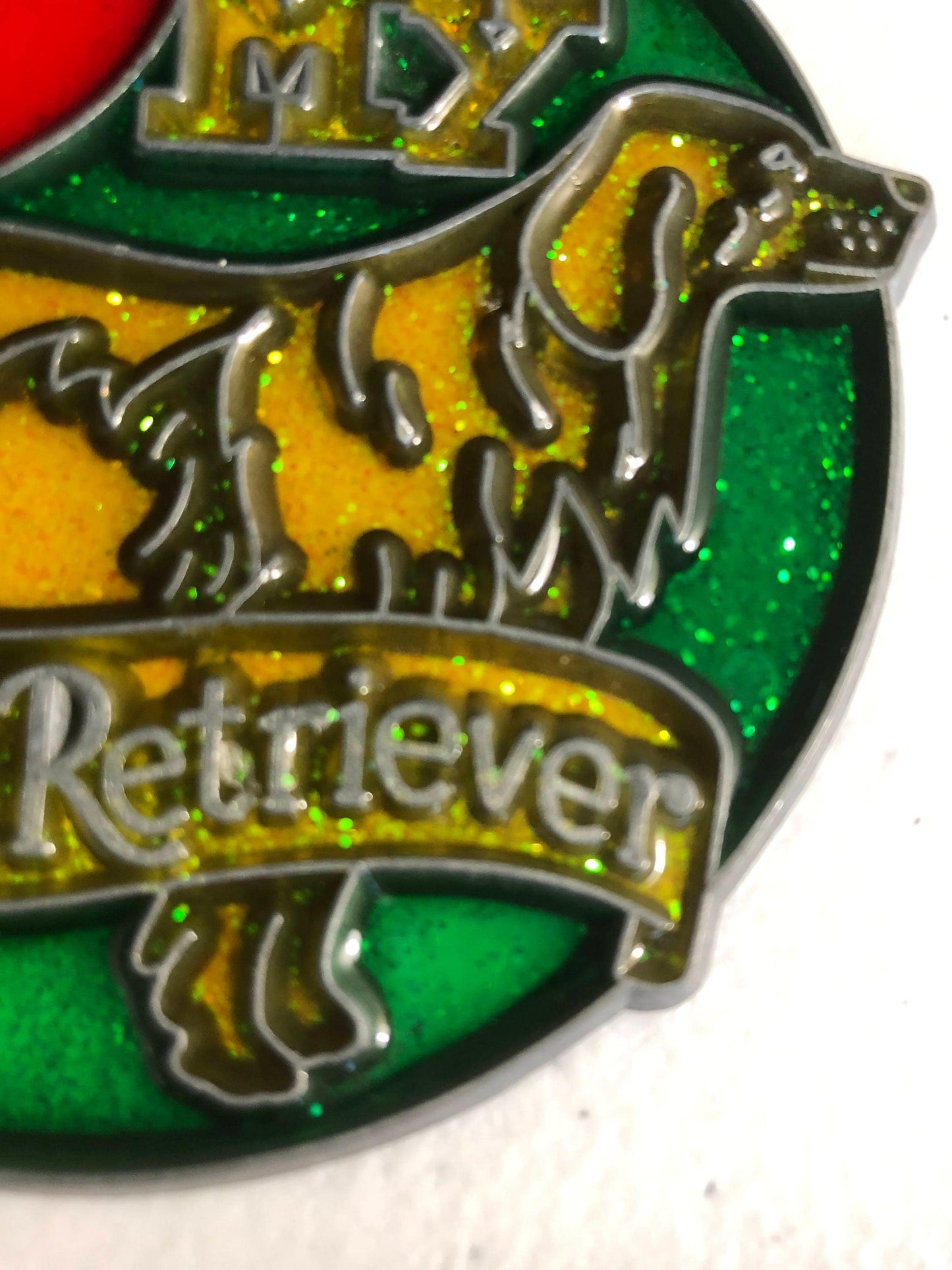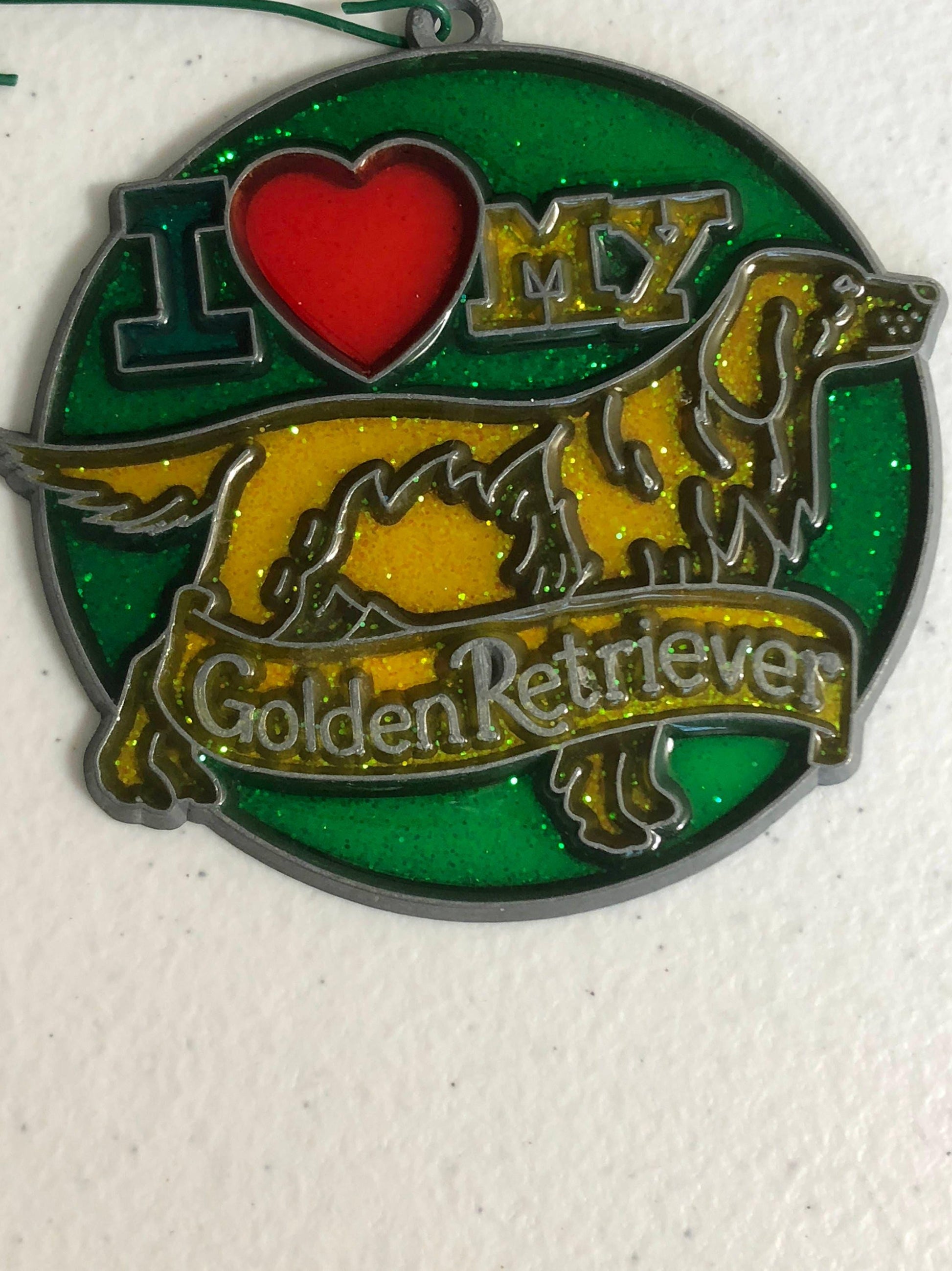 Stained Glass, I Love my Golden Retriever, Vintage, Christmas, Ornament