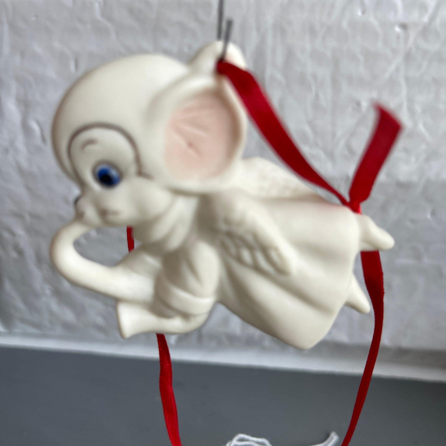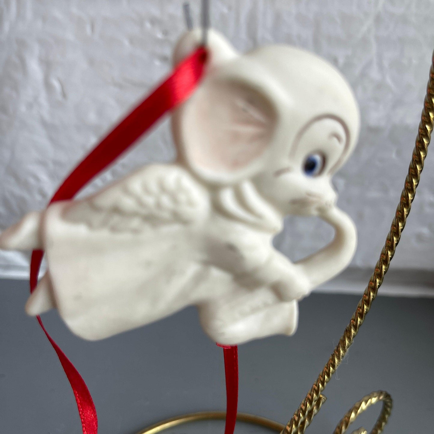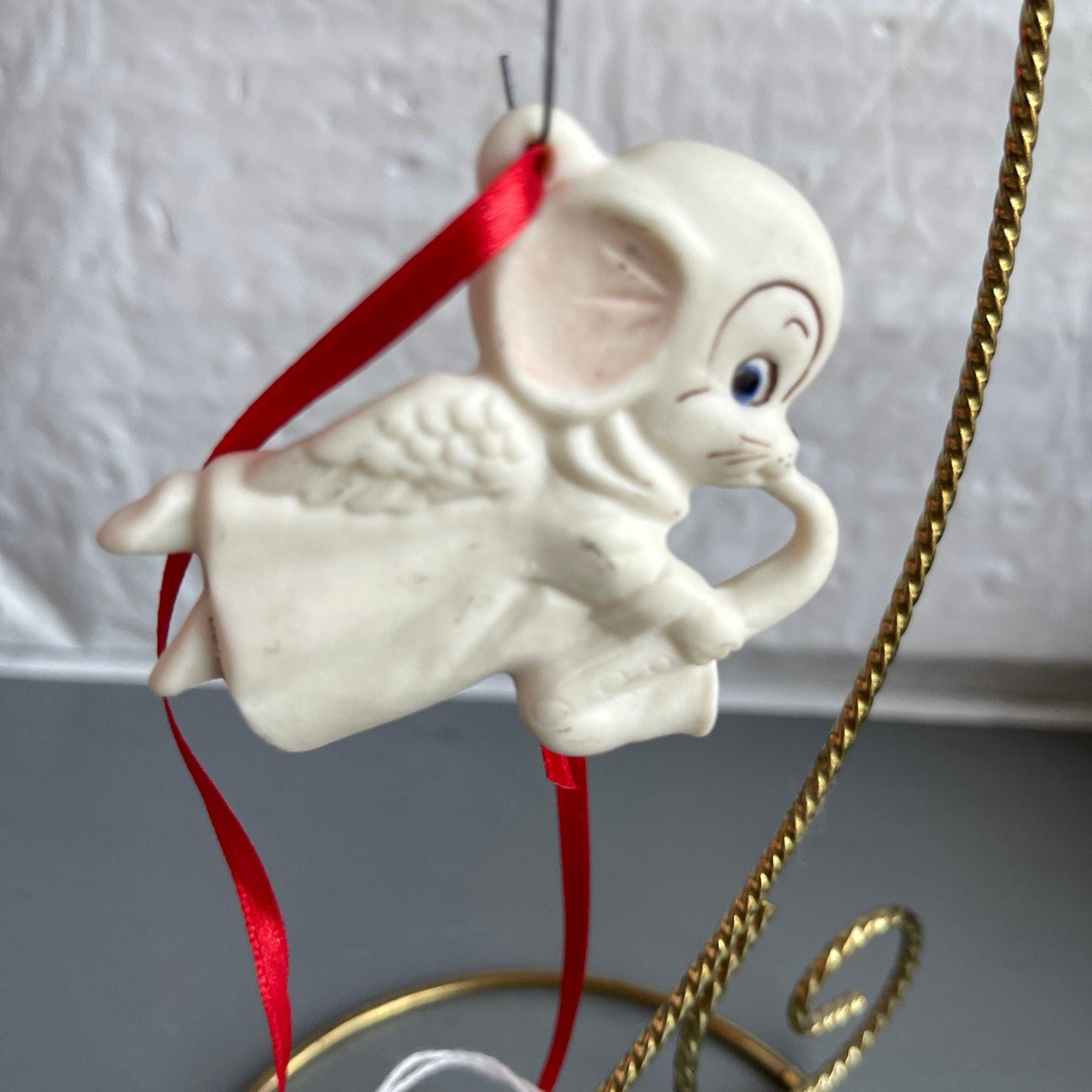 Sweet Little Blue Eyed Angel Mouse Playing Saxophone Vintage 1984, Porcelain Christmas Ornament