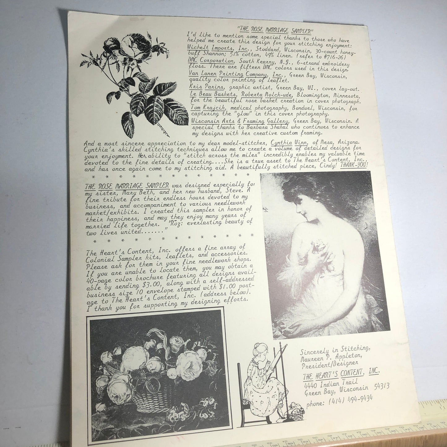 The Heart's Content, Rose Marriage Sampler, Vintage 1990, Counted Cross Stitch Chart