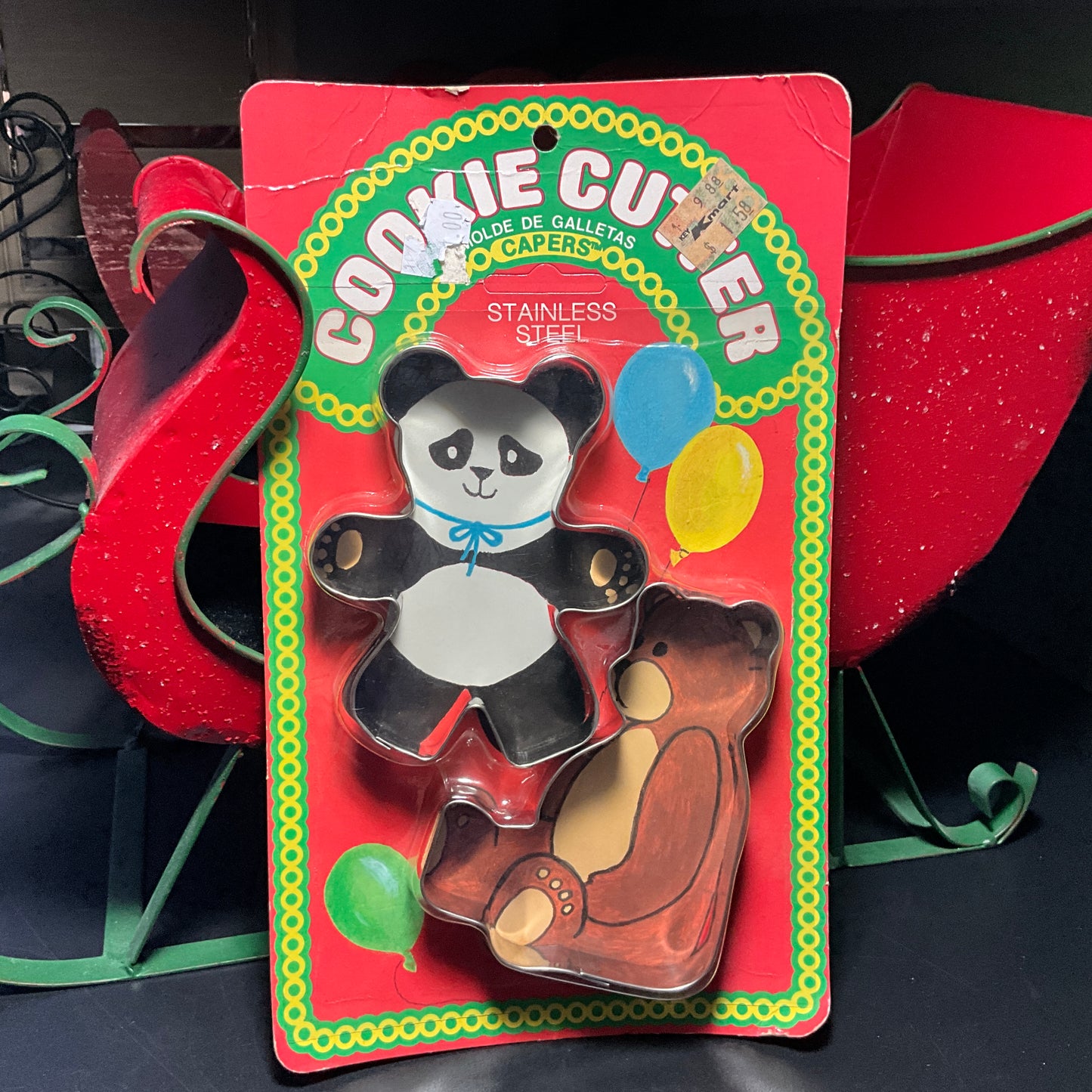 The Lone Toy Tree Panda & Teddy Bear stainless steel cookie cutters vintage kitchen collectible