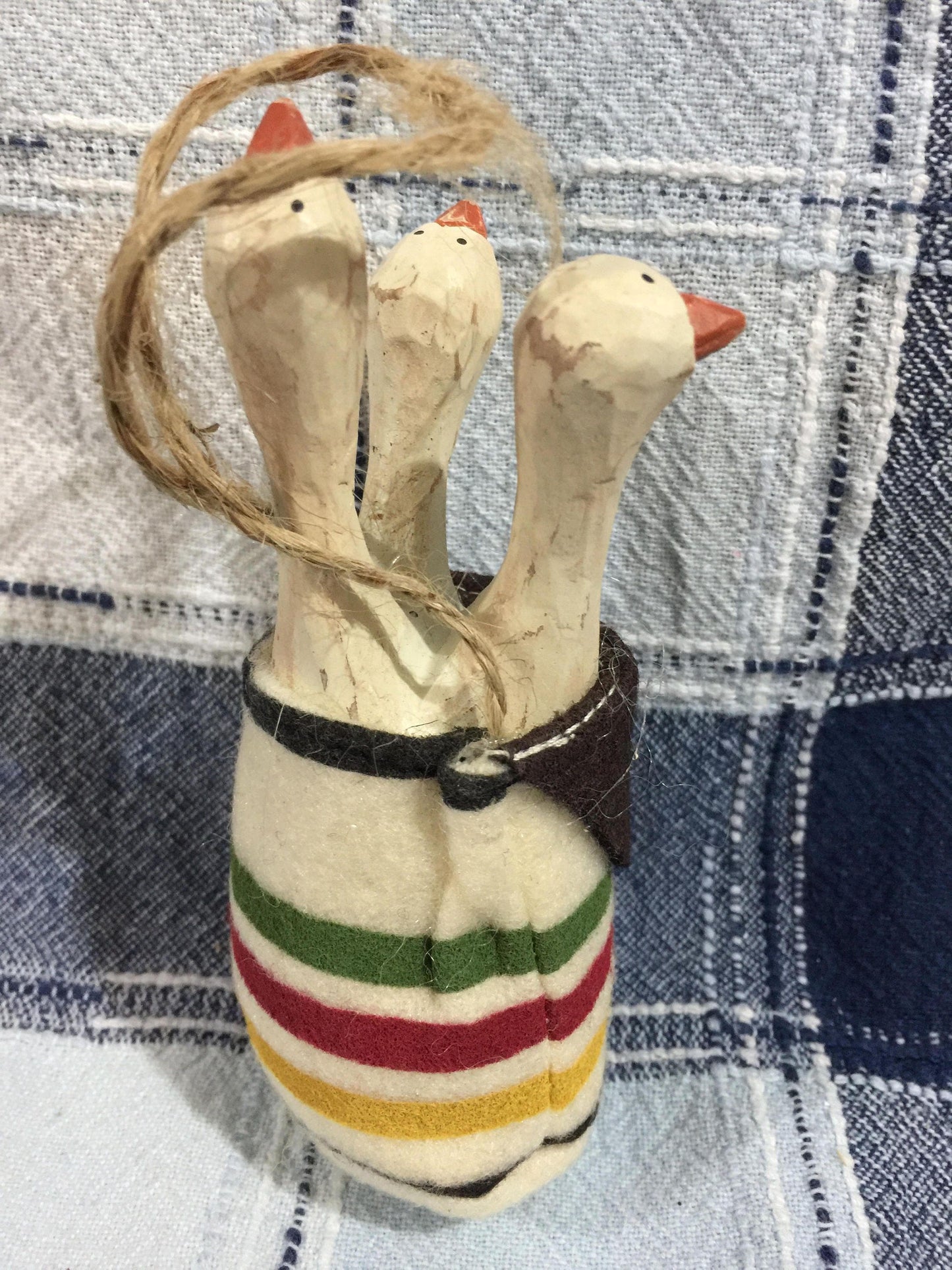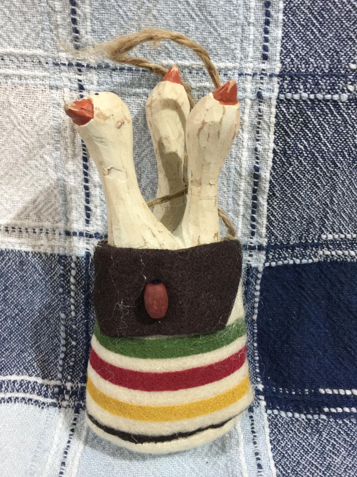 Vintage thee Geese in a pouch ornament