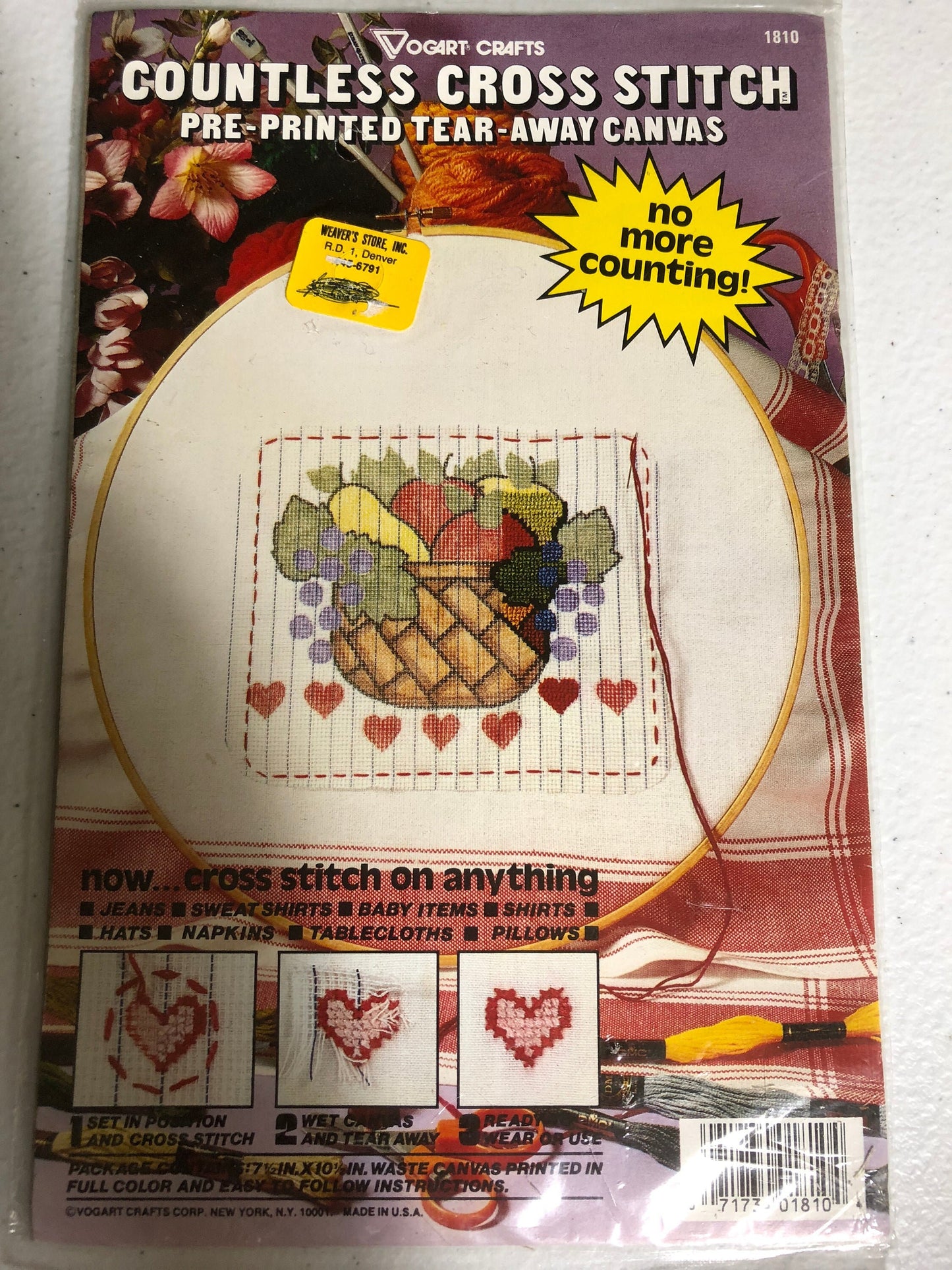 Vogart Crafts, Countless Cross Stitch, Fruit Basket, Pre-Printed Tear-Away Canvas