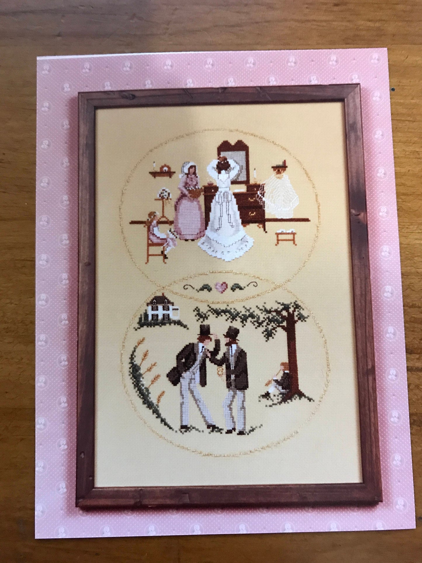 Vintage Wedding Day Counted Cross Stitch design by Heart of the Country. This design shows the bride and groom getting ready for their big day !!