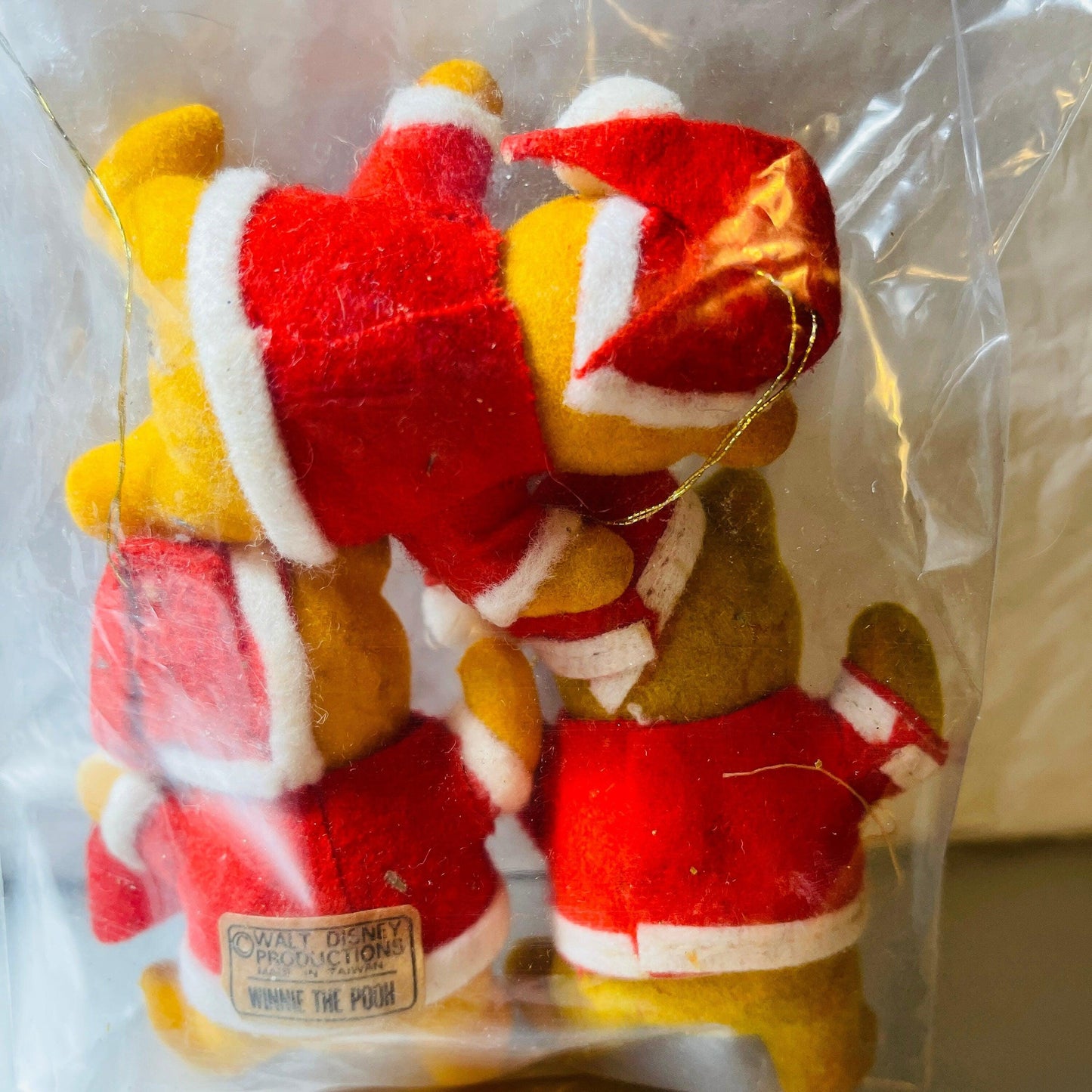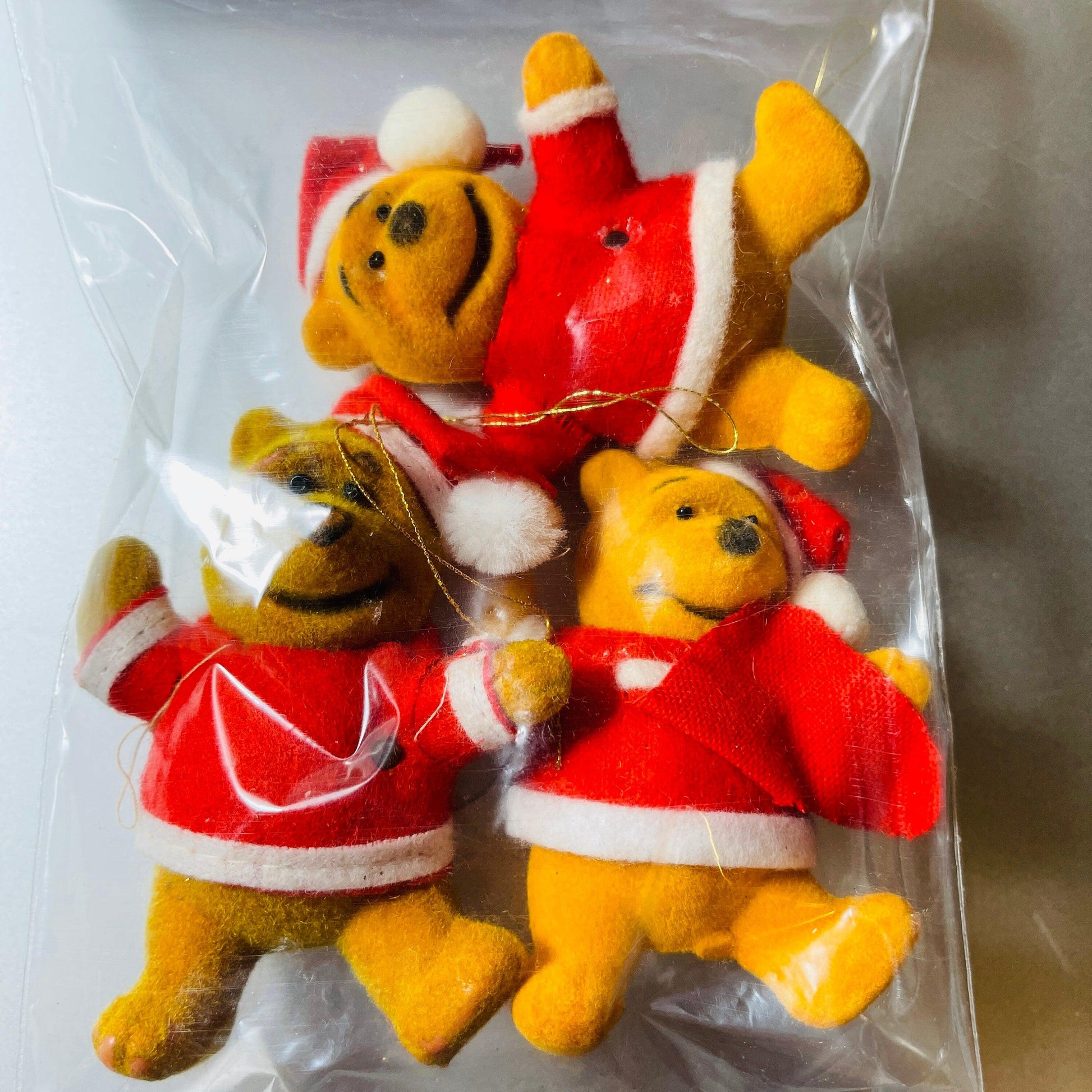 Winnie the Pooh Set of 3 Walt Disney Productions Flocked Vintage Ornaments