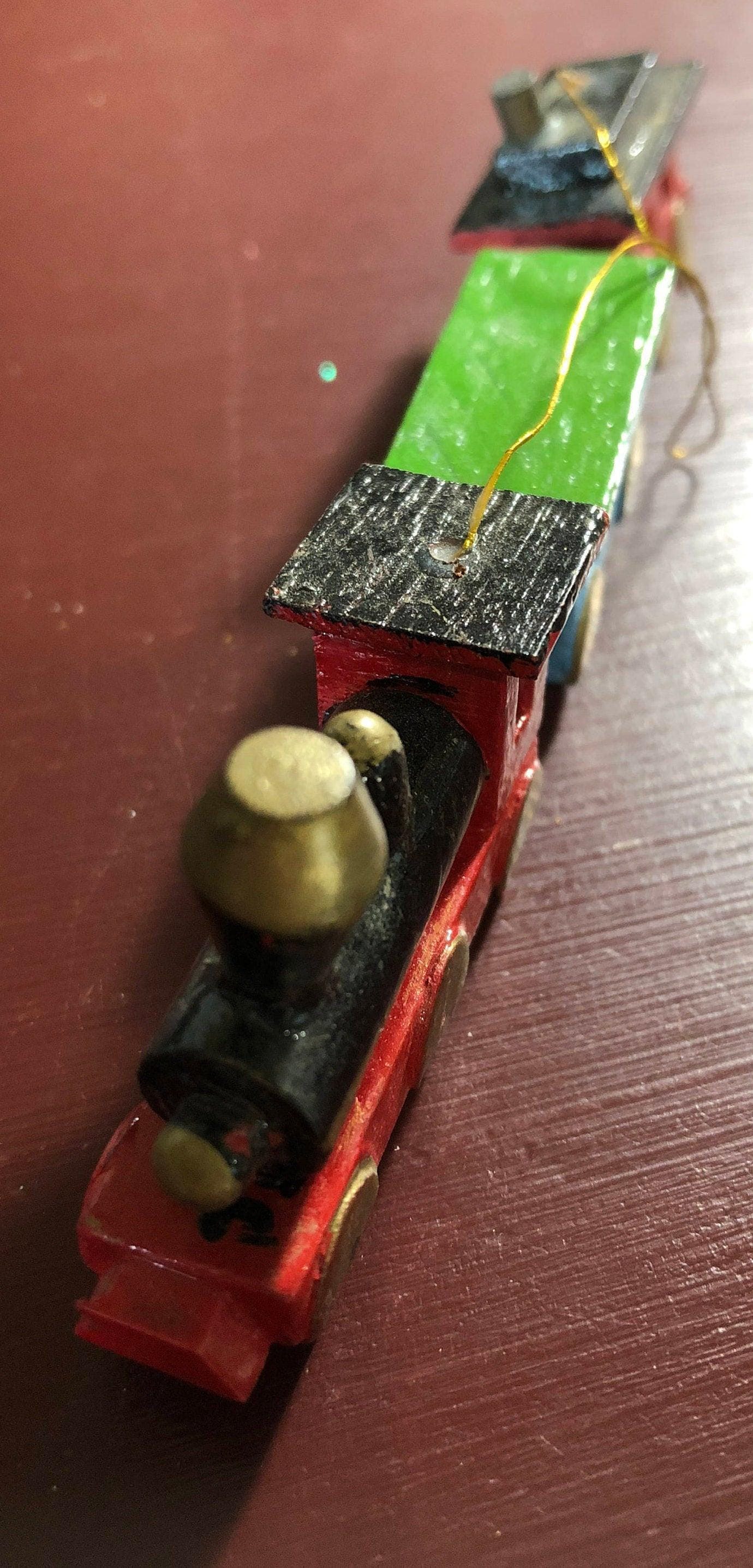 Vintage, Mini, Wooden, Christmas, Train, Ornament, Little Wooden Train with Cattle Car