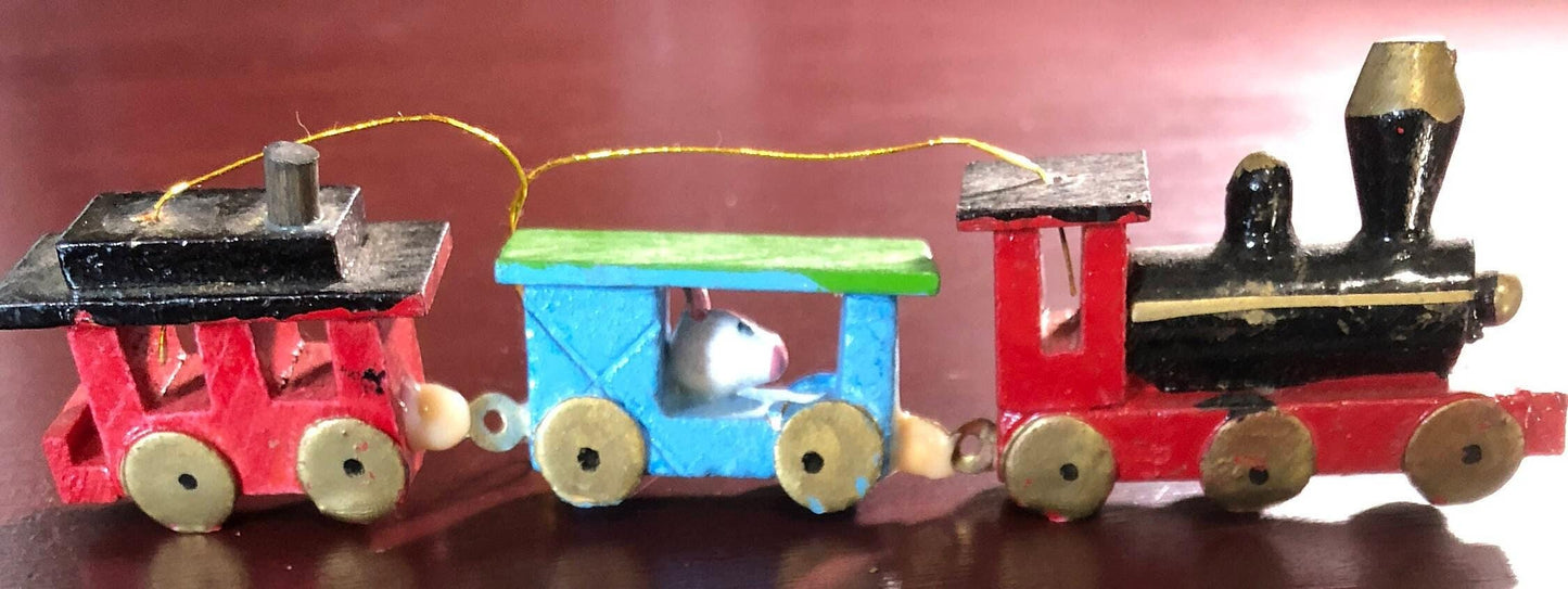 Wooden Christmas Train, Little Wooden Train with Cattle Car, Vintage Mini Ornament